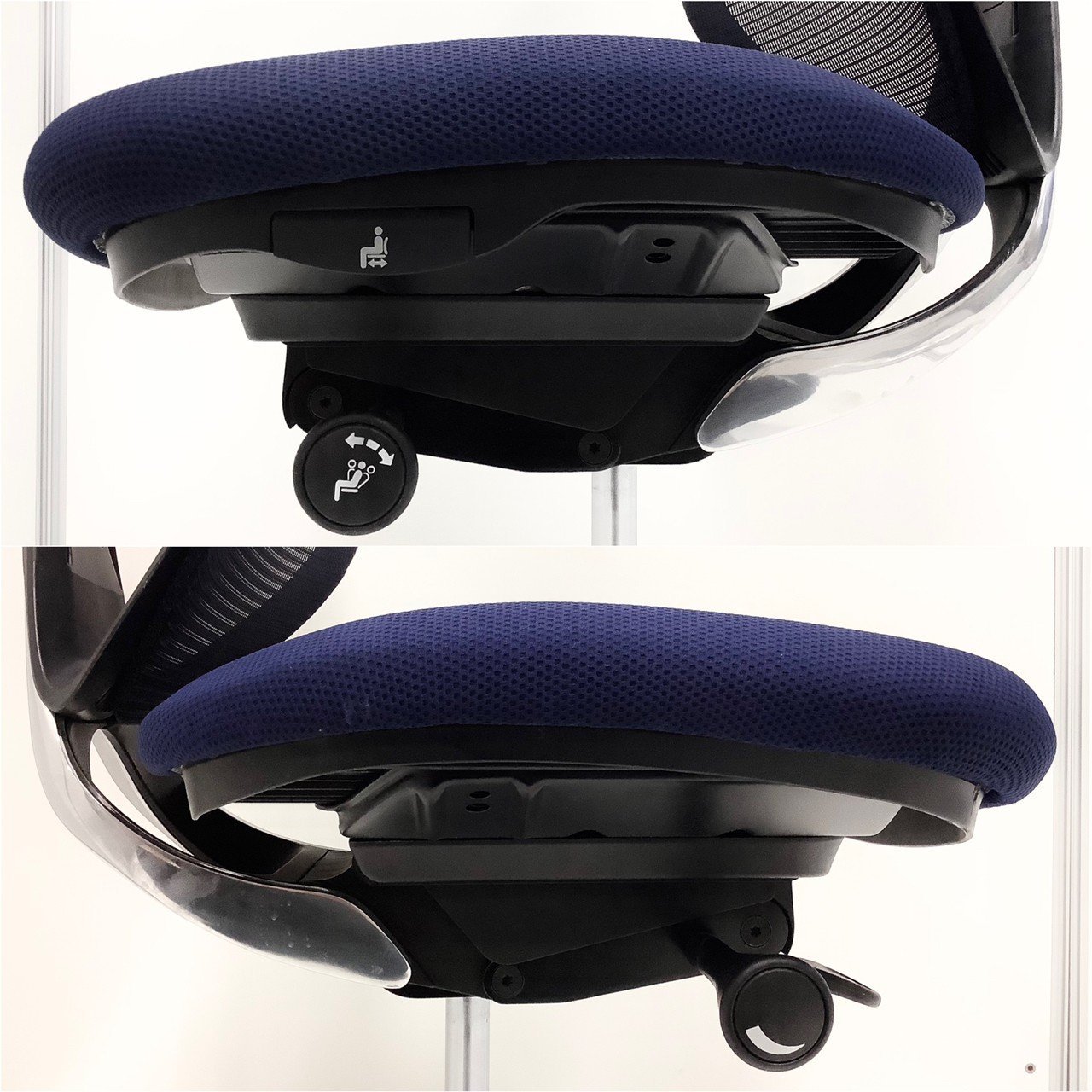 ◆座面の奥行調節(ストローク:50mm)