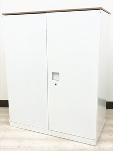 【定価約9万円!!マルチアクセスハンドルで開閉がラクラクです!!ホワイトカラー両開き書庫!!オシャレな天板付き!!】■オカムラ■レクトライン