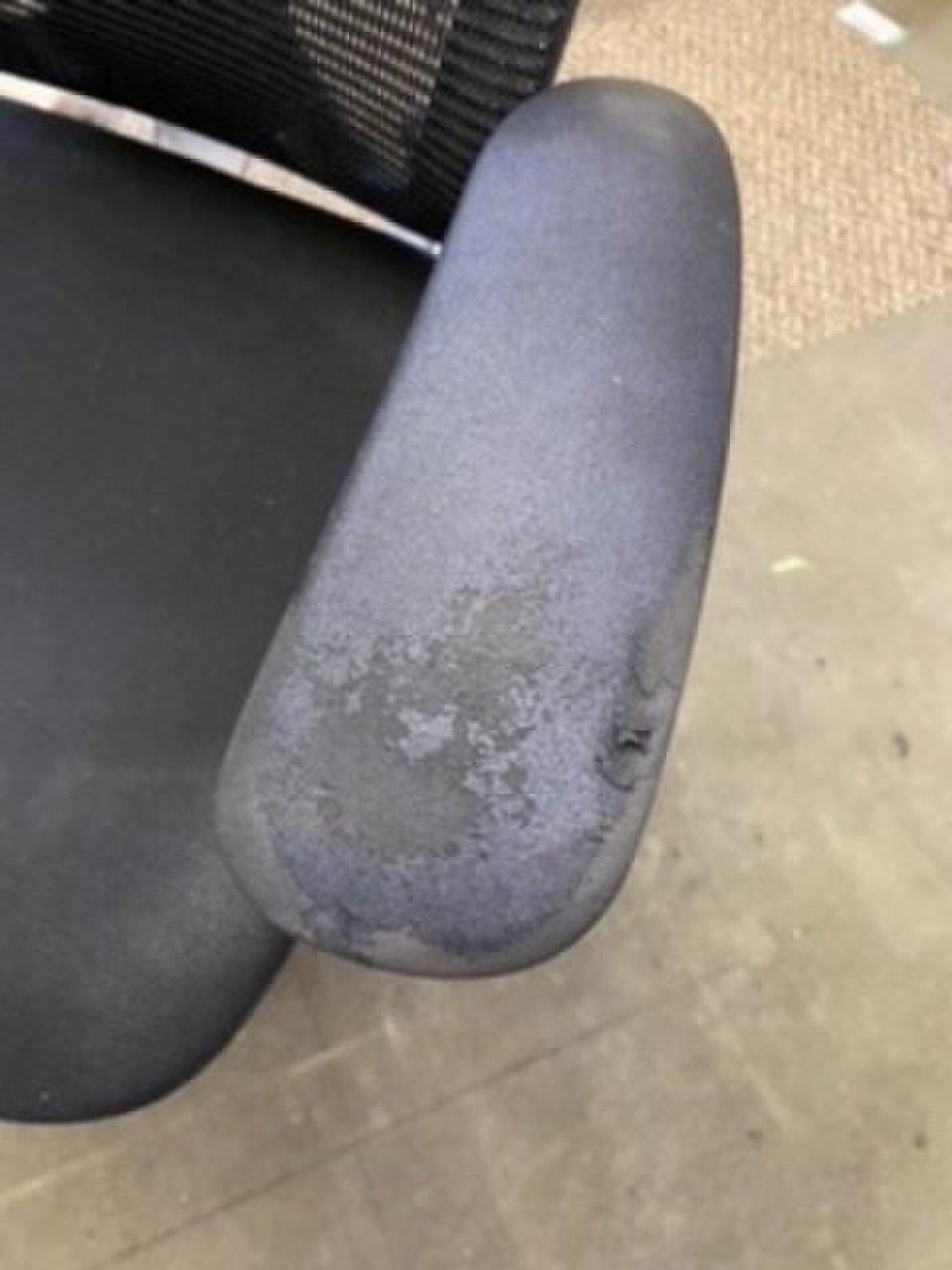 - あり黄ばみ・変色が広い範囲にうっすらある、または濃い黄ばみ・変色が一部ある。(例、座面・背もたれ、脚部等にある。)