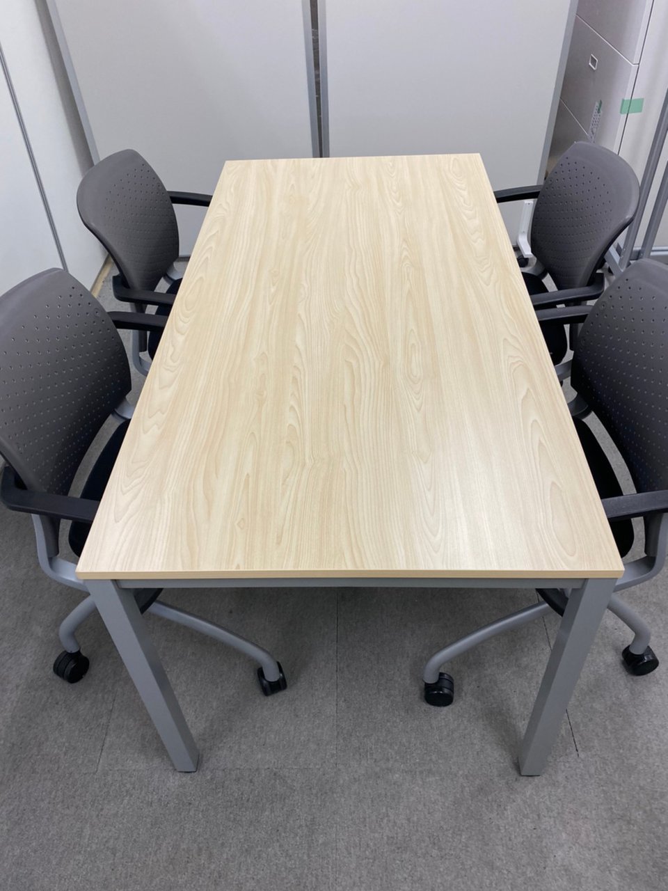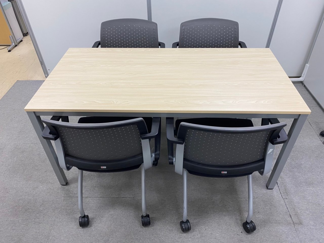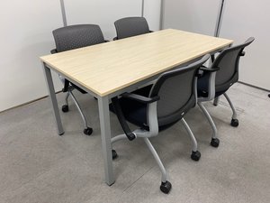 【4名用のミーティングセット!】幅1500㎜のテーブル+ミーティングチェア4脚セット【NA】- 池袋店
