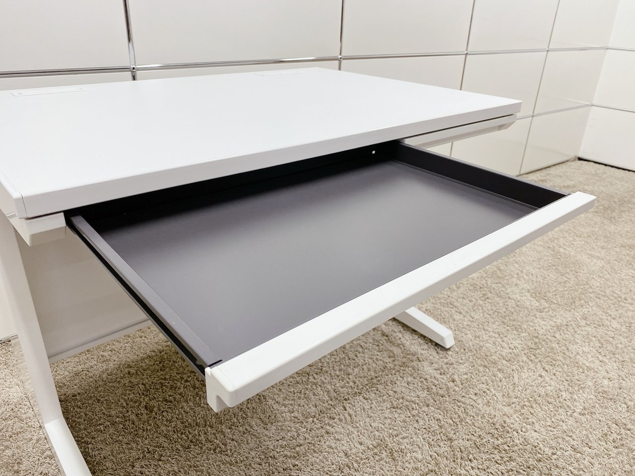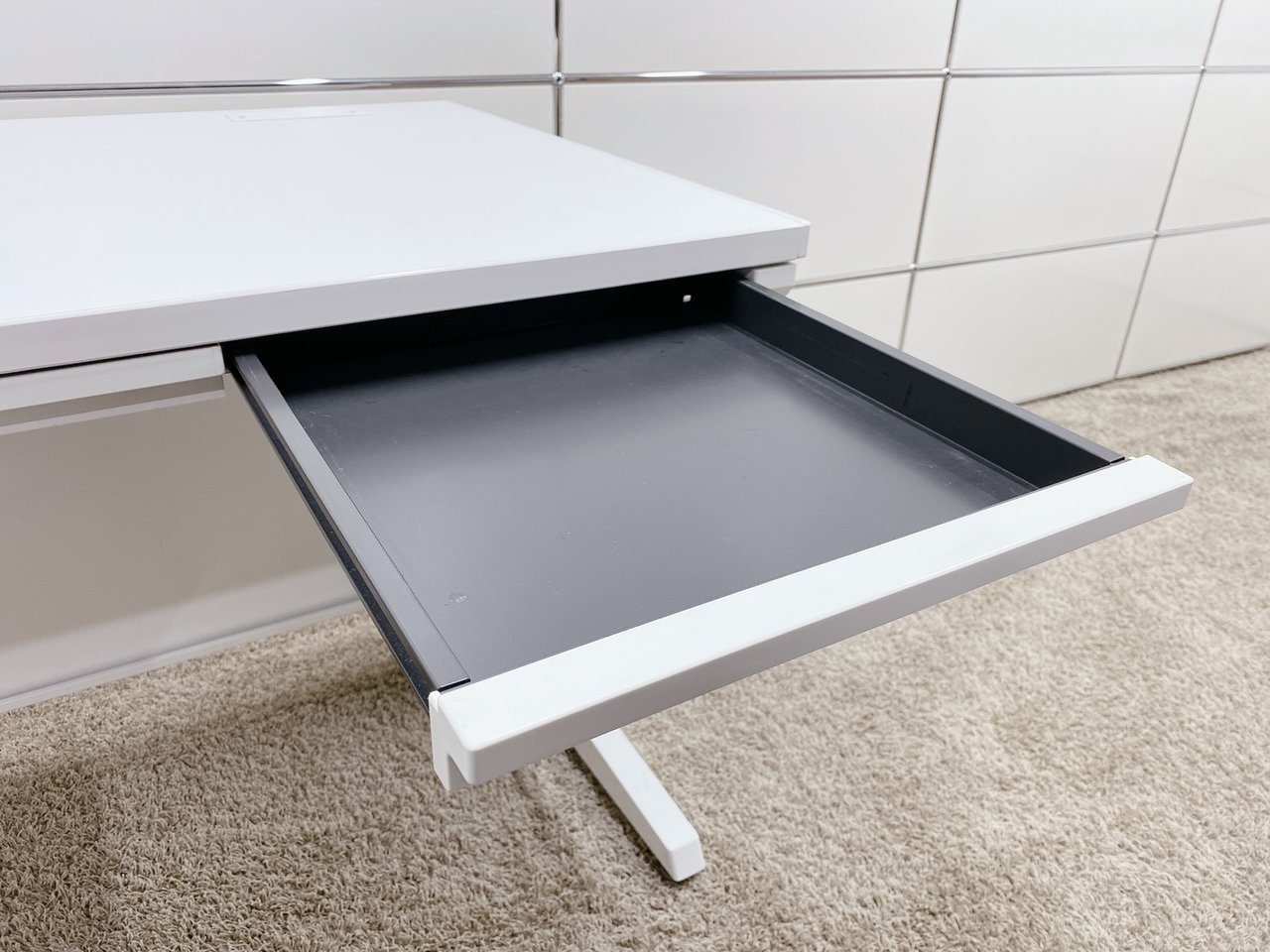 デスクには小物やちょっとした書類が収納できる、薄い引き出しが付いてます。