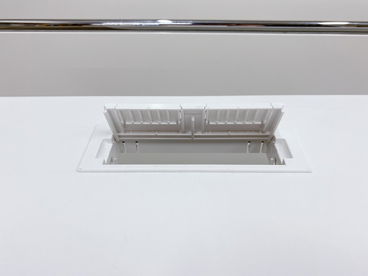 配線カバーもついておりますので、ビジネスフォンやパソコンの配線を綺麗にまとめて仕事が可能!