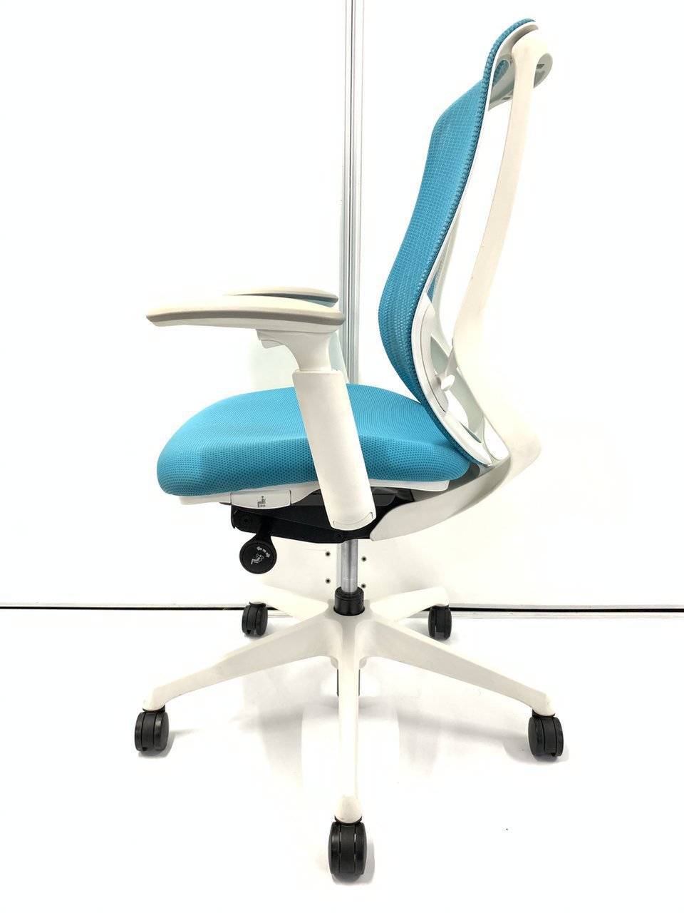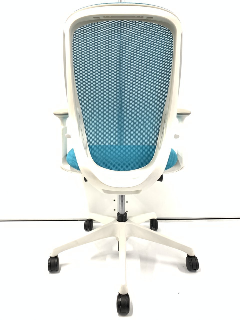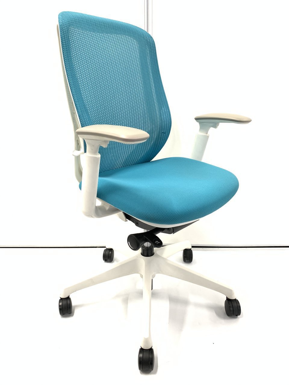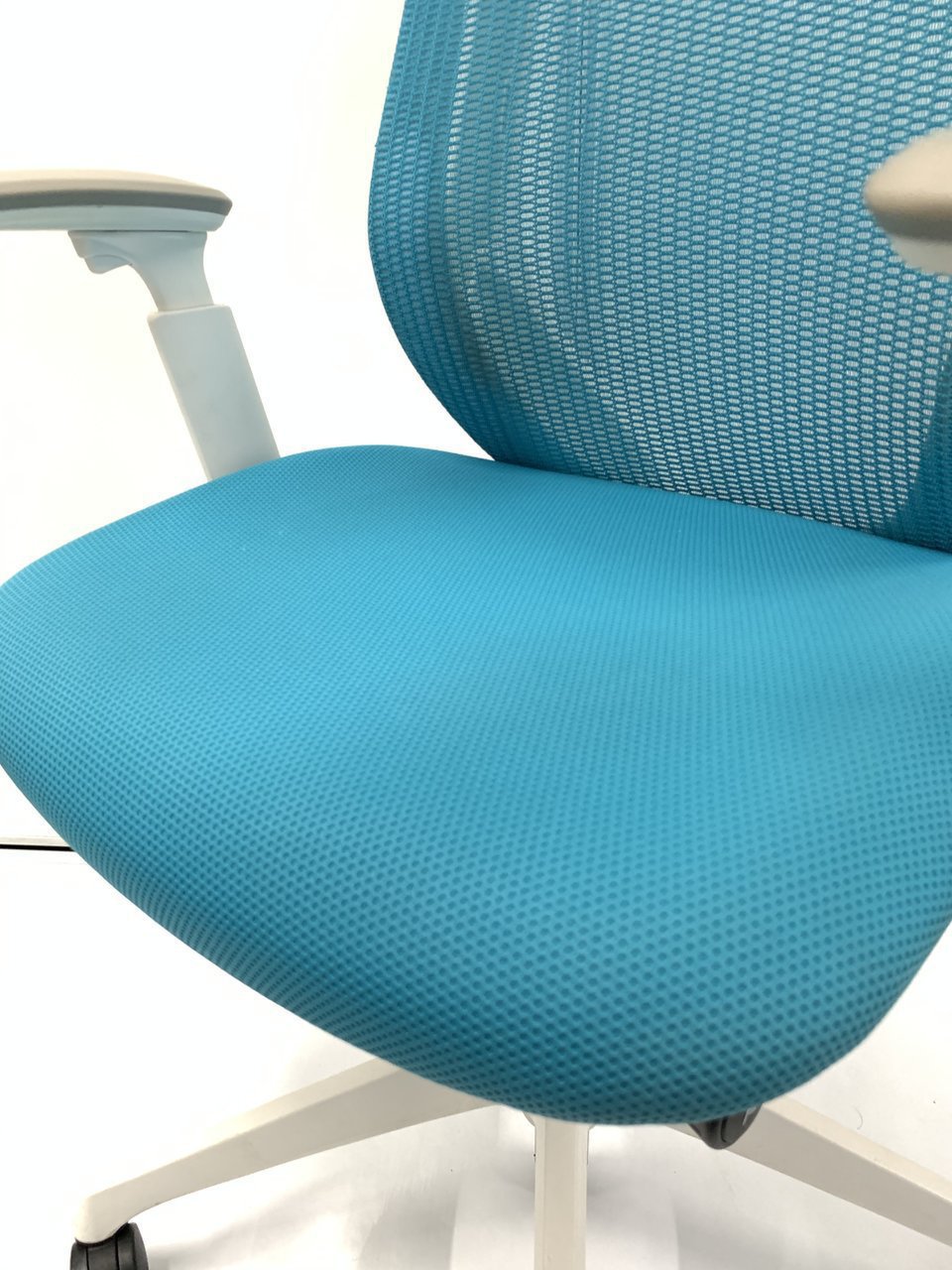 【ターコイズブルー】【ホワイトフレーム】【人気チェア】【23脚入荷】【シルフィー】【可動肘】【前傾チルト】【ハイバック】【2019年製】【使用2年未満】