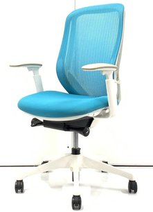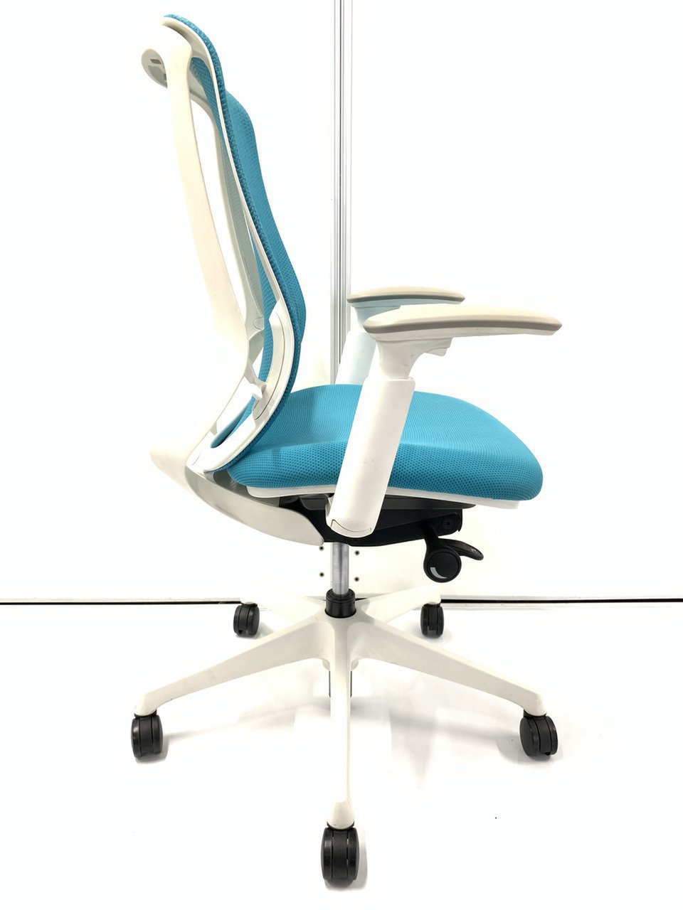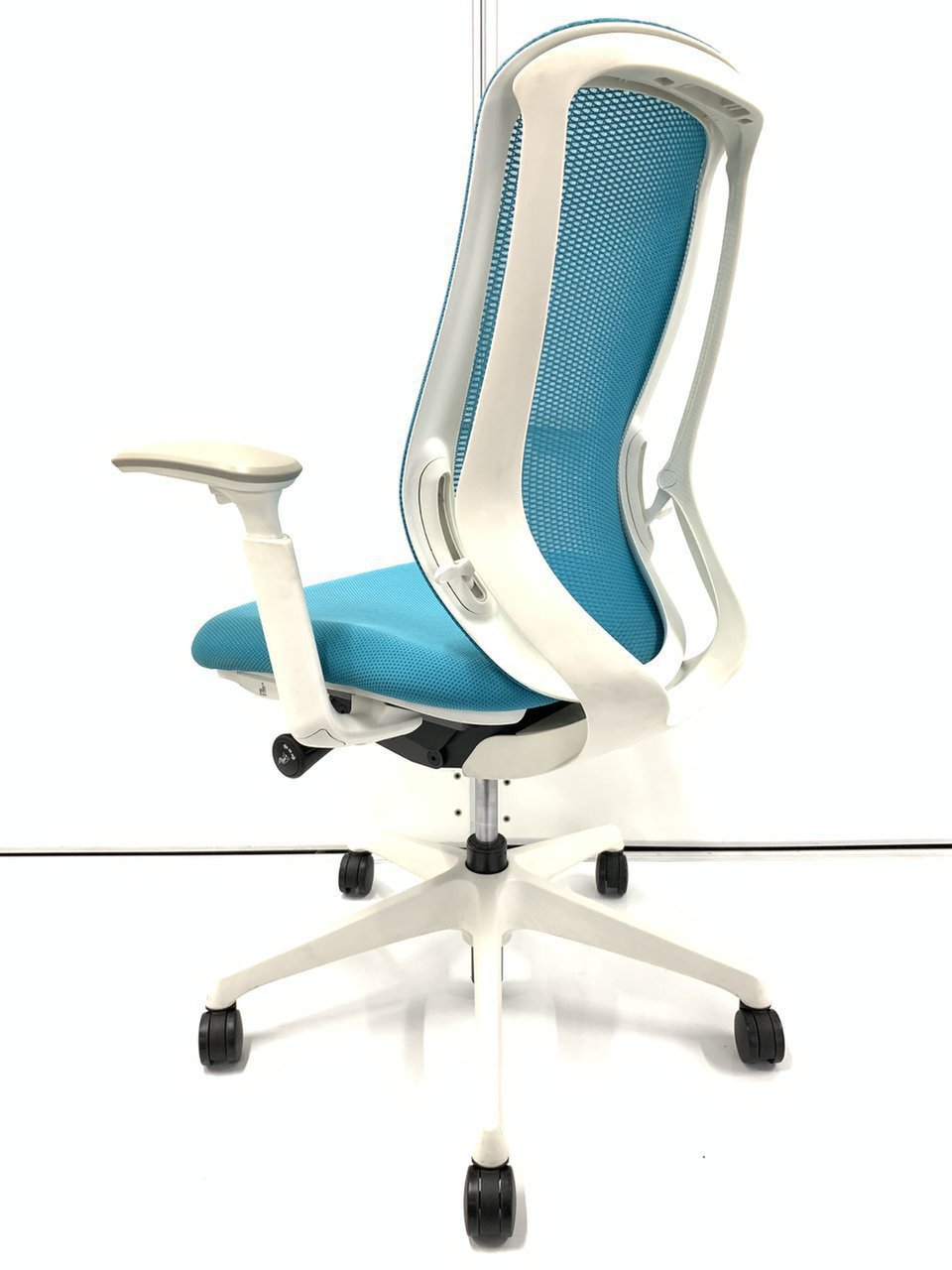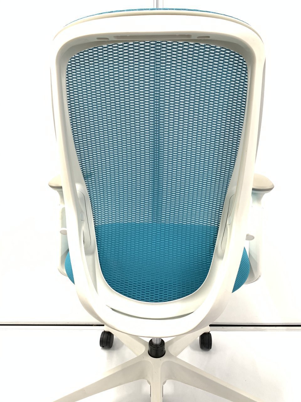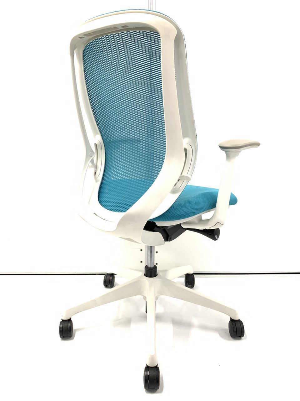 【ターコイズブルー】【ホワイトフレーム】【人気チェア】【23脚入荷】【シルフィー】【可動肘】【前傾チルト】【ハイバック】【2019年製】【使用2年未満】