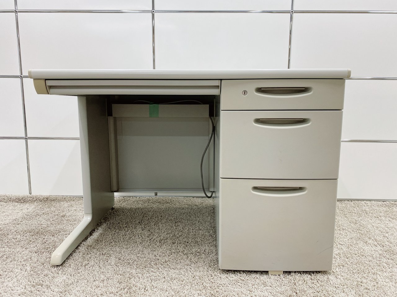 【Aランク】美品です! 引出3段で使い勝手便利な片袖机! ※上段引出90mmスタンダード