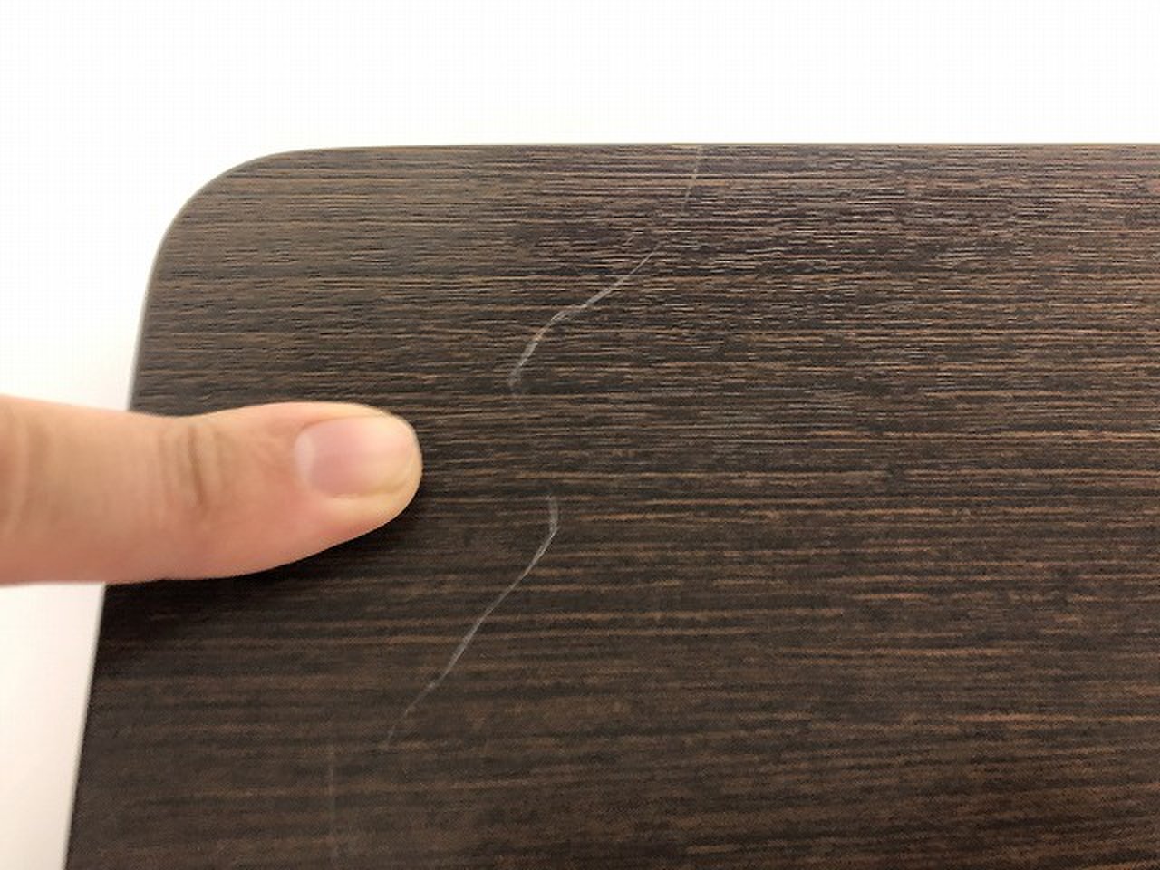 - 壊れている天板歪み、アジャスター無し、キャスター使用不可のようにそのテーブルの本来の効用を果たすための機能に不具合がある。