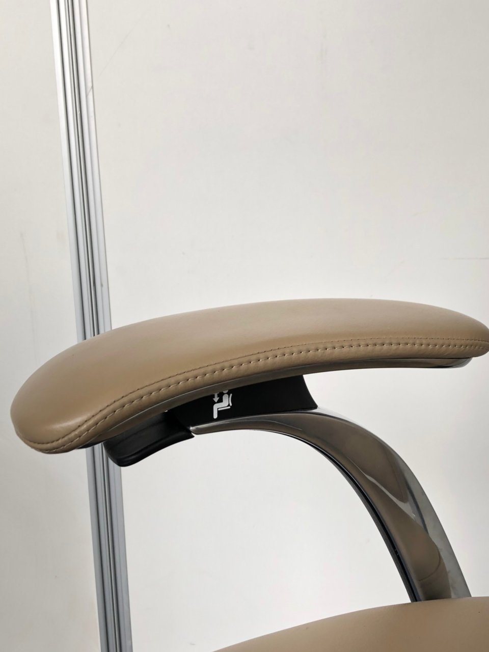 【背面に剝がれあり】高級感あふれるレザー張りタイプ!オカムラ/コンテッサ/ブラウン/可動肘