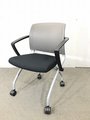 収納する際は、座面を上げて前に重ねて収納可能になります。