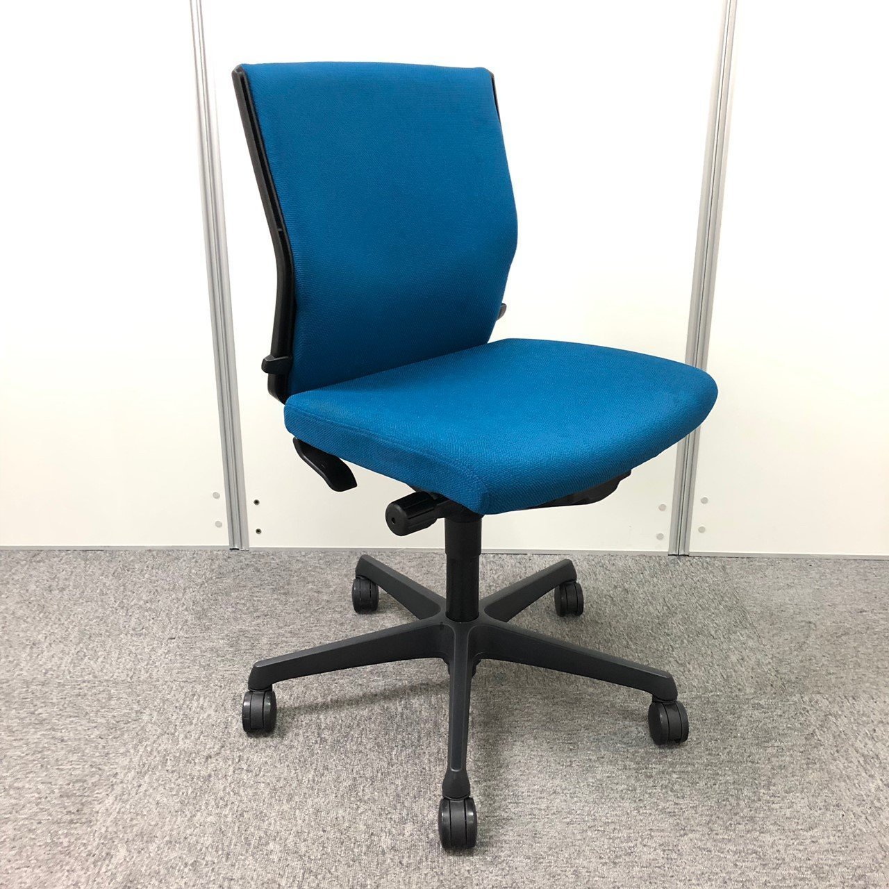 オカムラ製 エスクード 肘無しローバックチェア ブルー色 グレーシェル 【在庫入替品】コスパ抜群 おすすめ