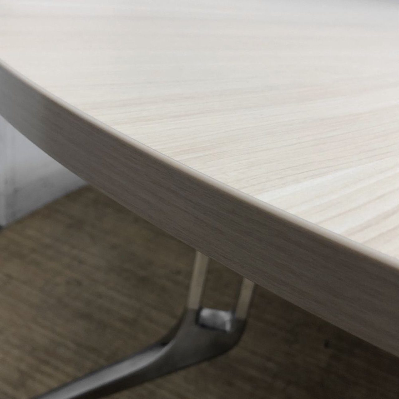 流行の木目天板に高級感のあるアルミダイキャストの脚が、