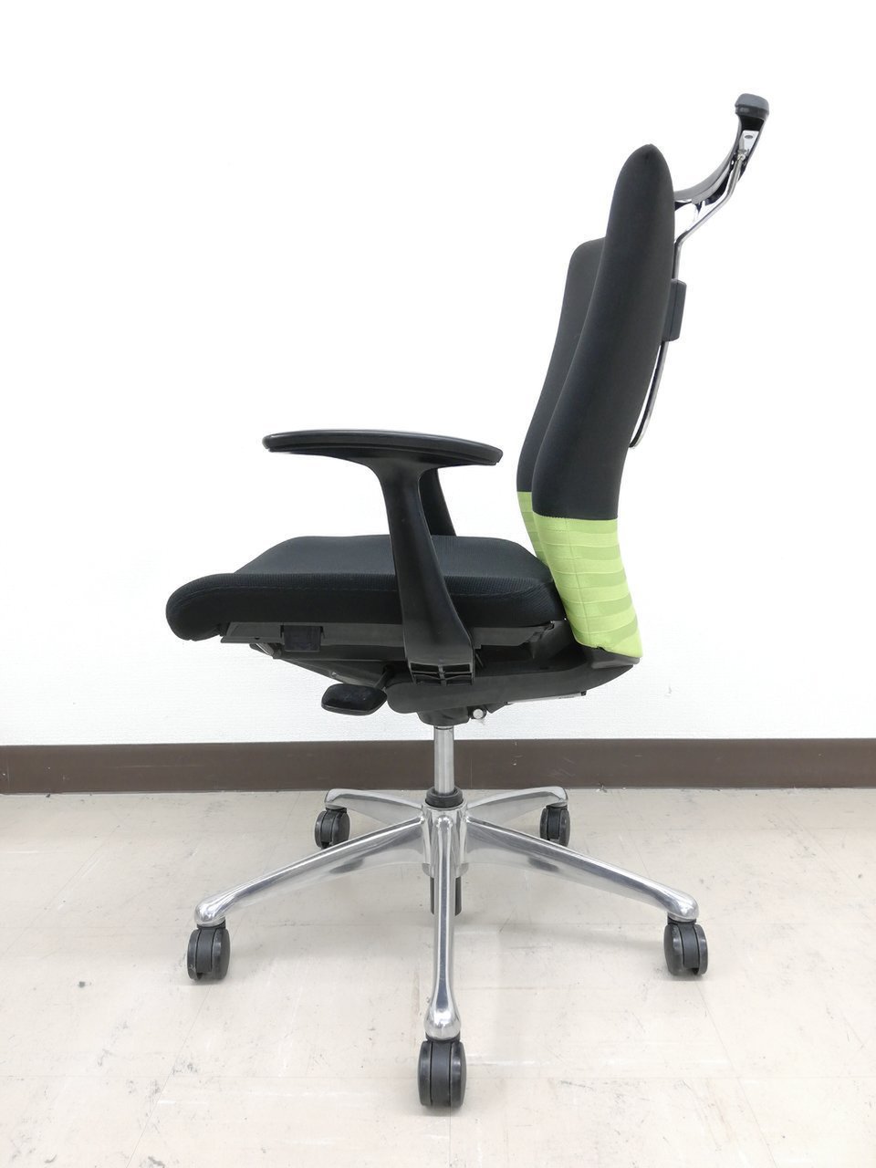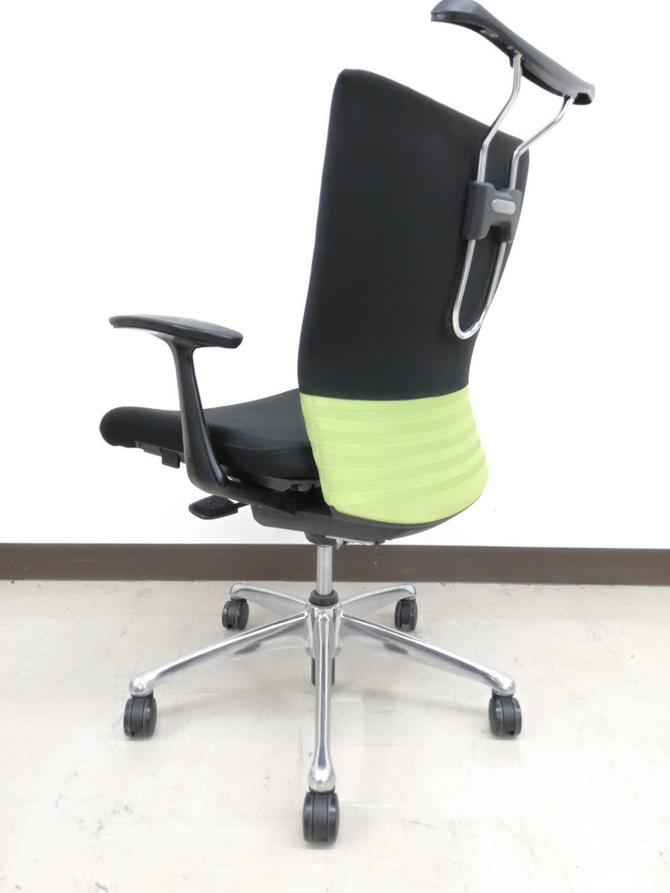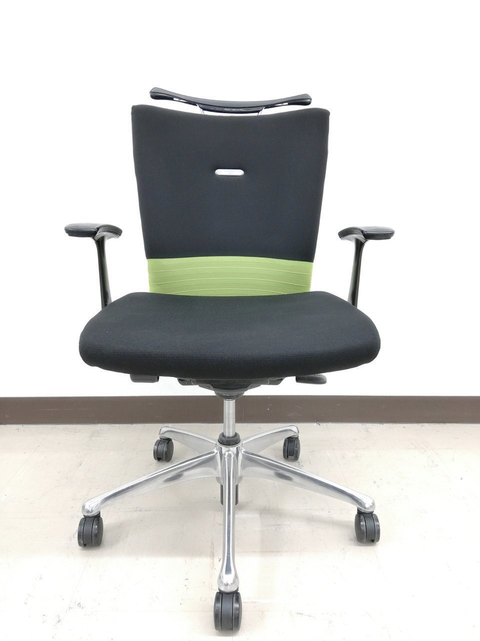 【人気商品】【残り3脚】オカムラ製 フィーゴ ブラック×グリーンカラー【肘付き】【リクライニング】