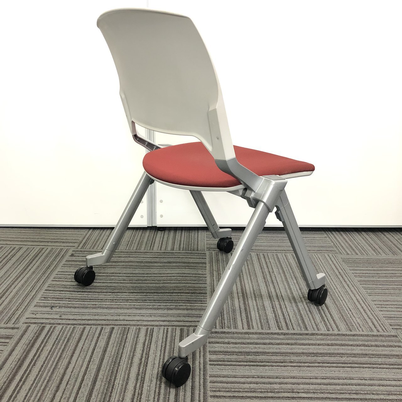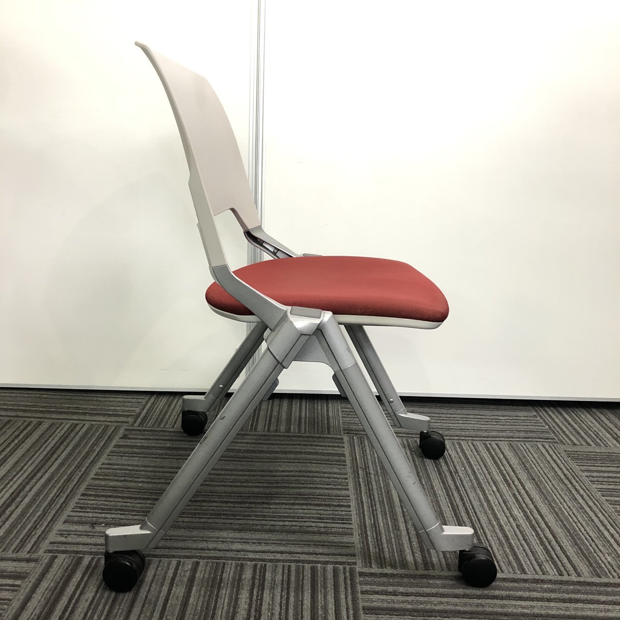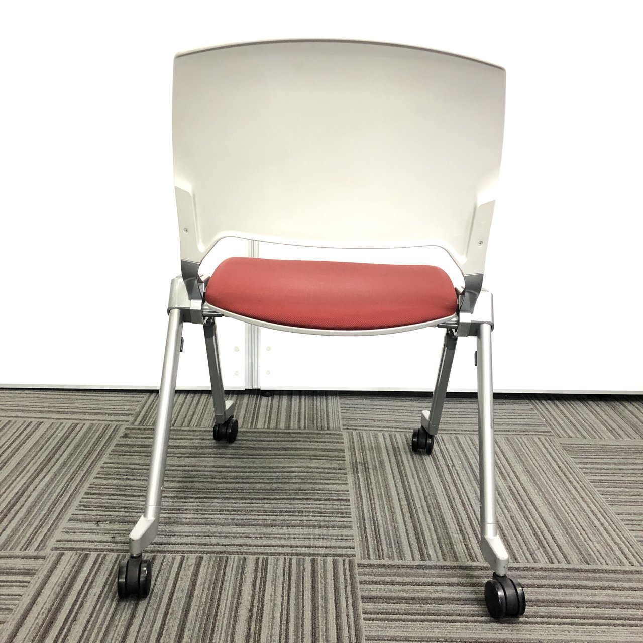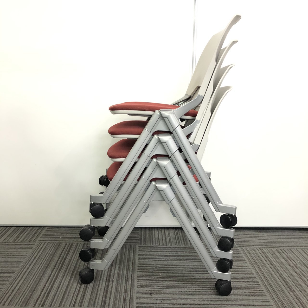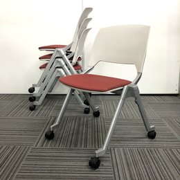 【4脚セット】【国内メーカー】内田洋行製 ネスティングチェア レッドカラー コンパクト収納【収納】【京都・滋賀】- 京都東寺店