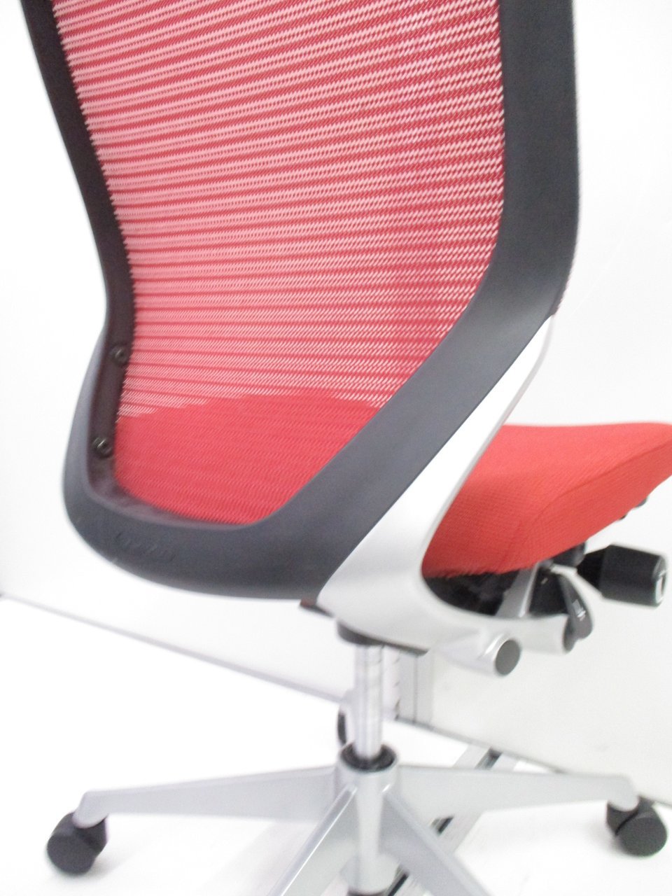 気に入っているのはリクライニング調整の自由さです。同じオカムラ社製の上位モデルや下位モデルも、角度が5段階程度の固定位置だったり、リクライニング強度も4段階だったりしますが、バロンチェアはどちらも無段階。つまり完全に好きな位置、好きな強度に調整することができます。