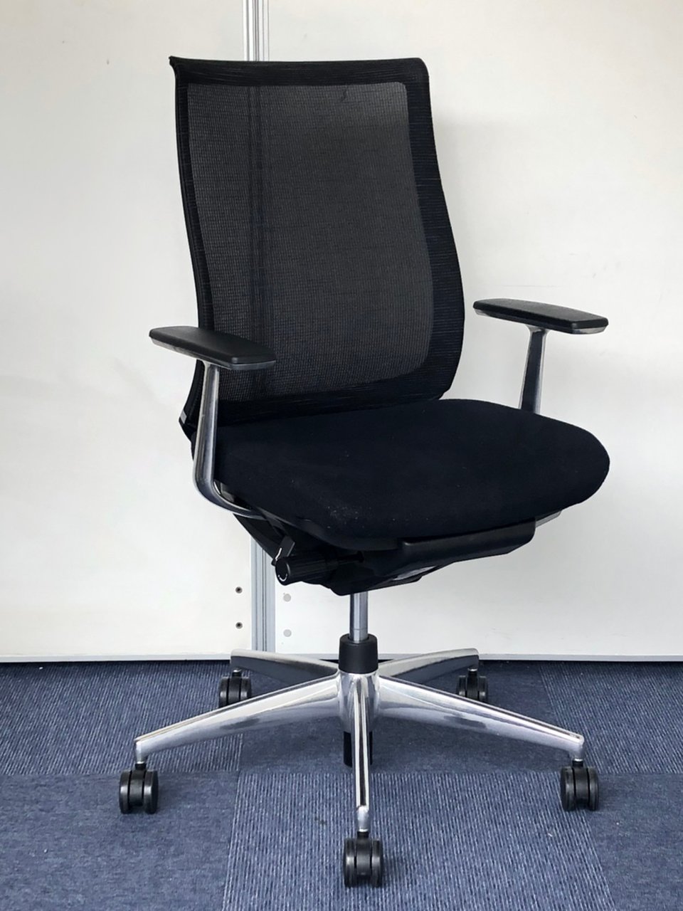 【肘に傷あり】【専門業者によるクリーにング済み!】コクヨ製 ベゼルチェア 固定肘 ブラック