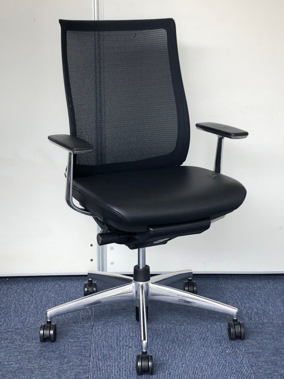 【17年製】デザインアーム(固定肘)|アルミポリッシュ脚|背もたれの生地