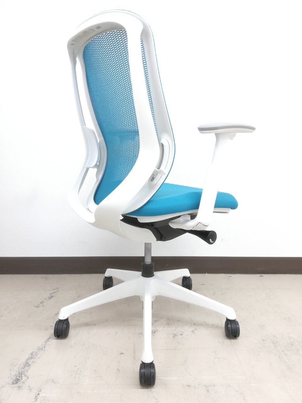 オカムラ製 シルフィーシリーズ 稼働肘 ハイバック ブルーカラー!!