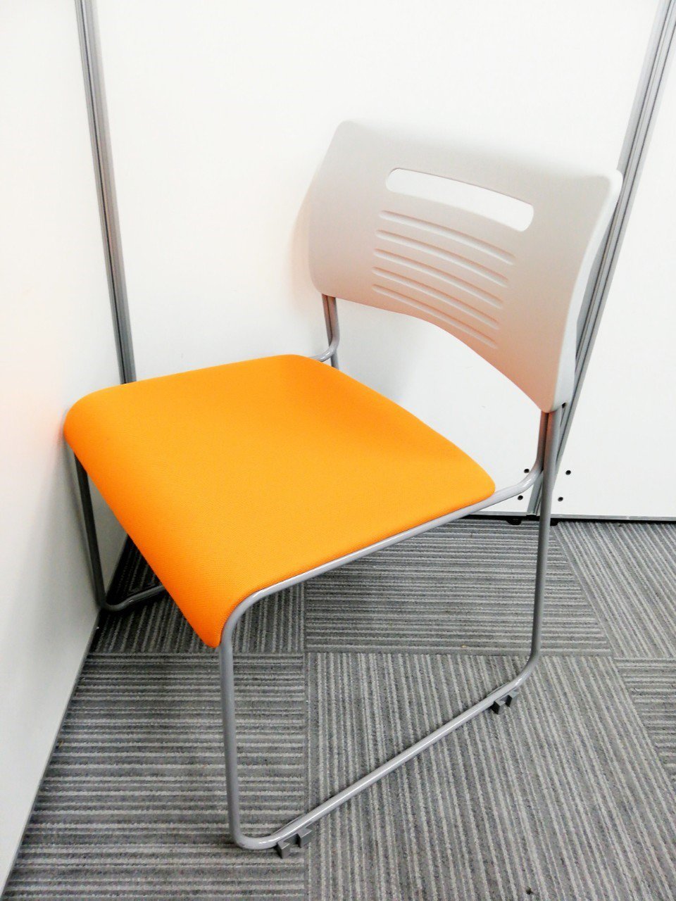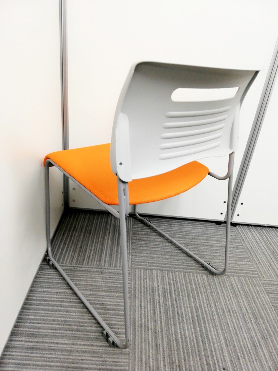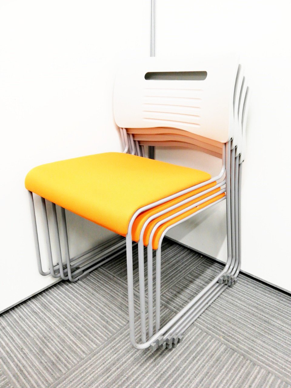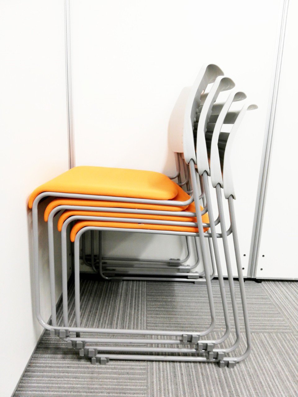 井上金庫 スタッキングチェア 4脚 オレンジ色 会議室 ミーティングルーム おすすめ- なんば日本橋店