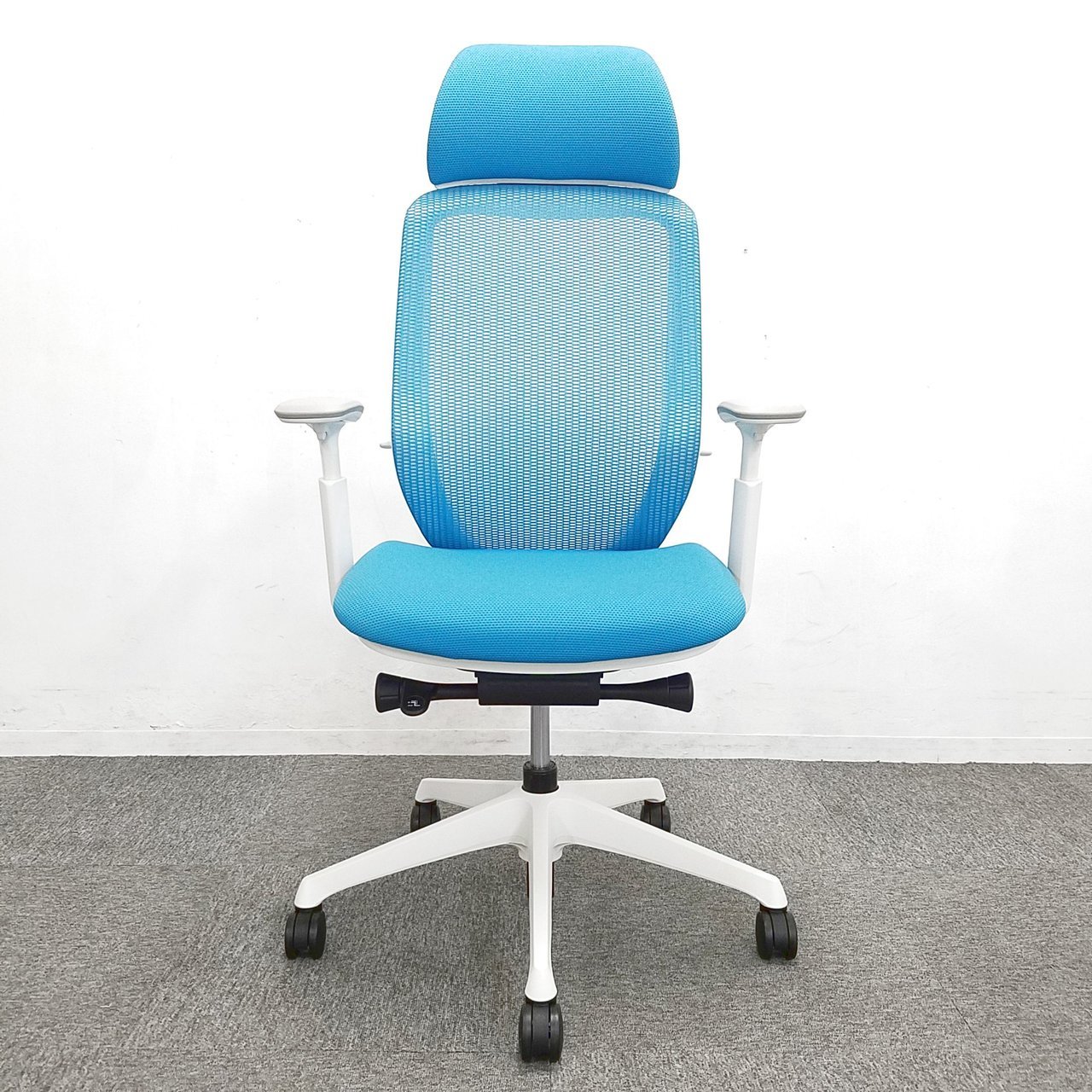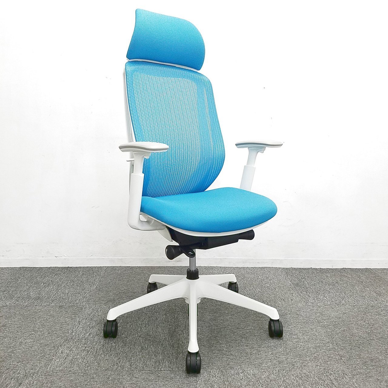 オカムラ製 シルフィーシリーズ 稼働肘 ハイバック ブルーカラー!!