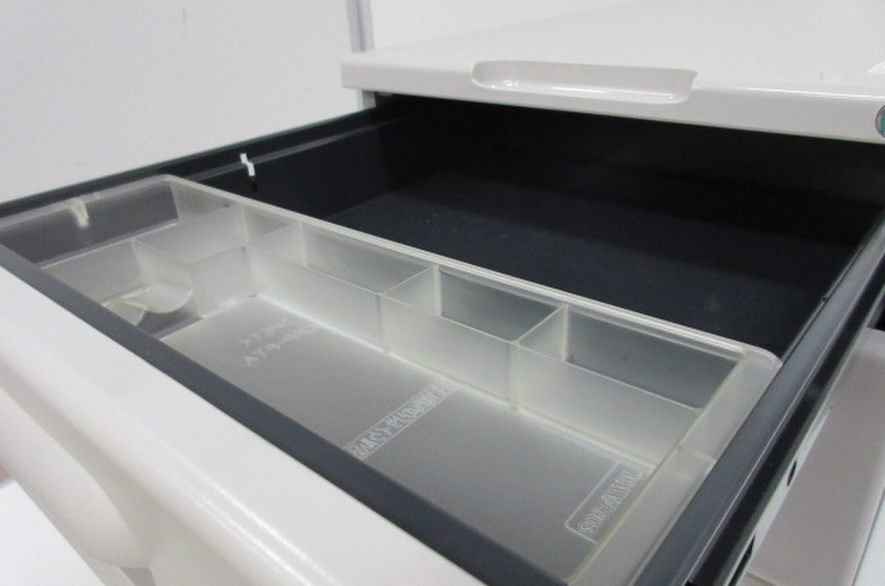 - 多数不具合ありその脇机・ワゴンの本来の効用を果たすための機能以外の多数が使用不可な状態。(例、引出が開閉しづらい、 キャスターロック機能使用不可、ラッチ不良 等がある。)