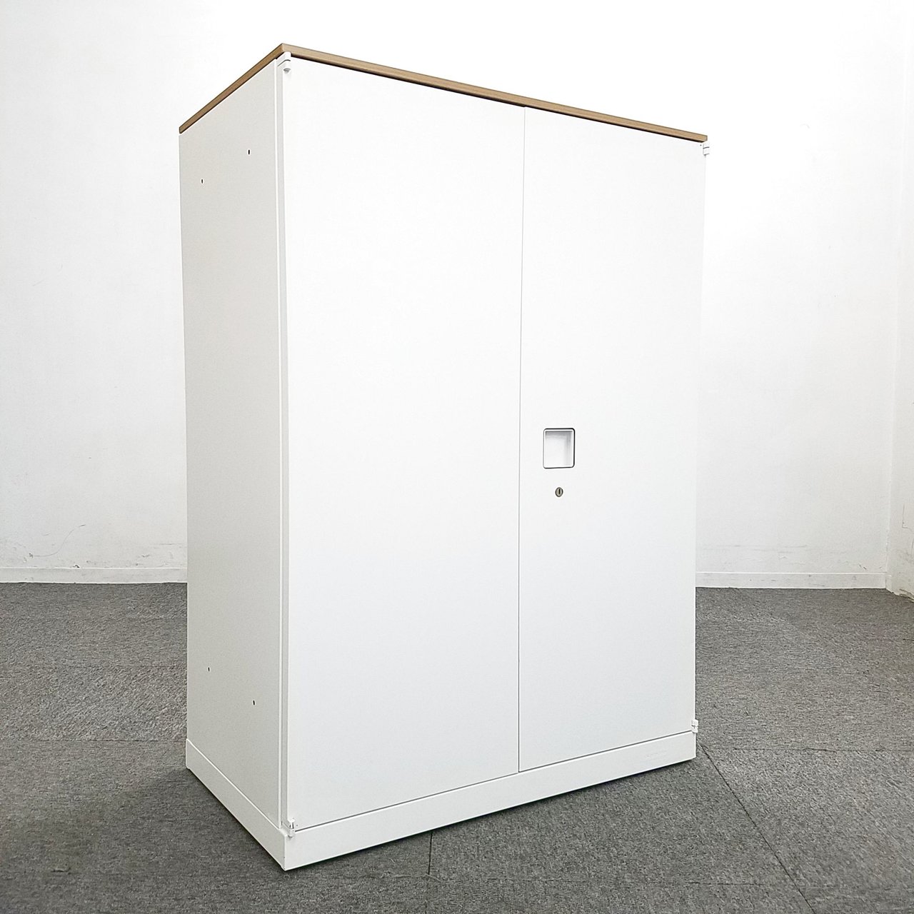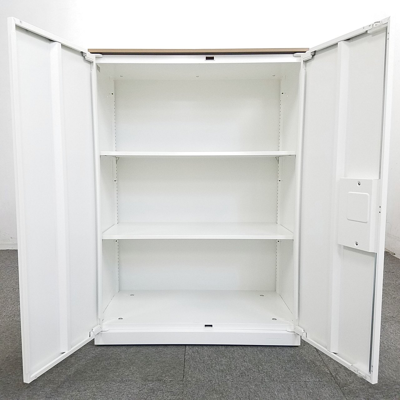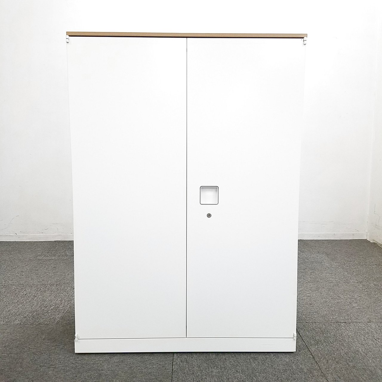 【定価約9万円!!マルチアクセスハンドルで開閉がラクラクです!!ホワイトカラー両開き書庫!!オシャレな天板付き!!】■オカムラ■レクトライン