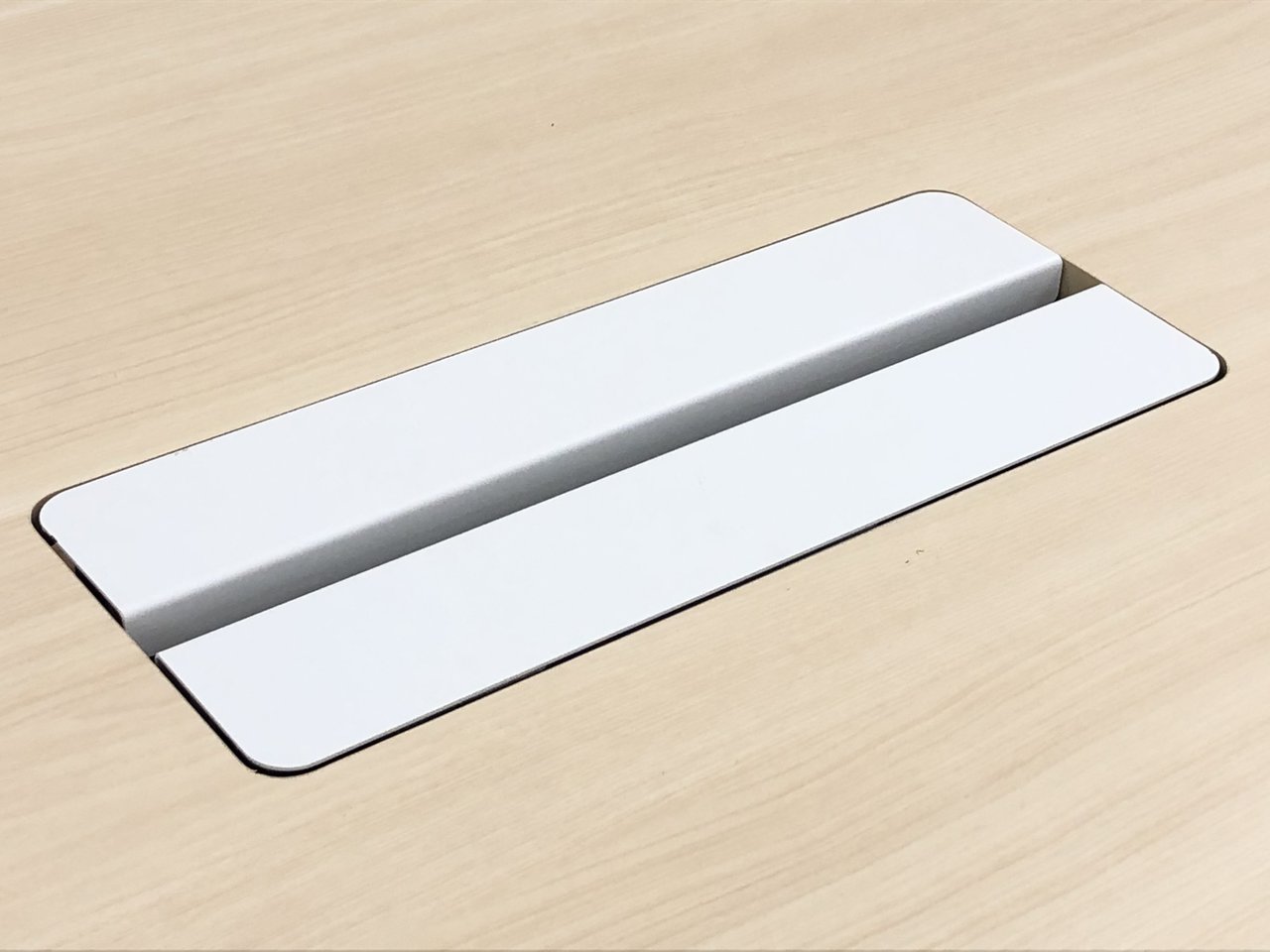 中間脚は天板奥にオフセットされているので、足元がすっきりしています。
