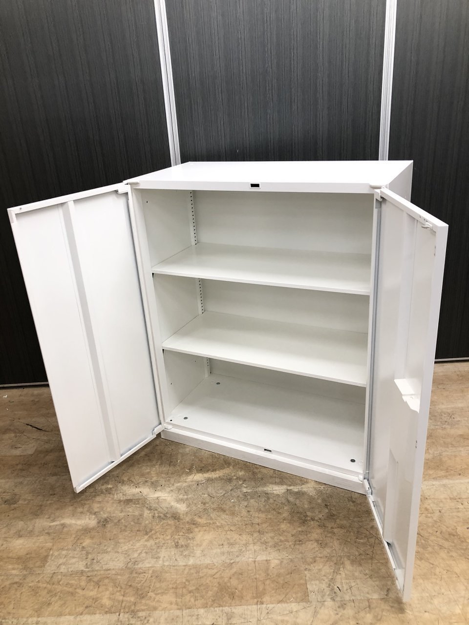 【定価約9万円!!マルチアクセスハンドルで開閉がラクラクです!!ホワイトカラー両開き書庫!!オシャレな天板付き!!】■オカムラ■レクトライン