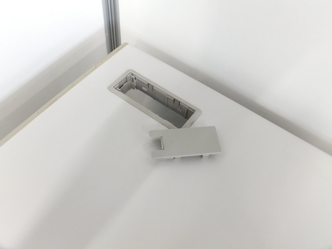 - 天板にコードホールが2ヵ所あり、レイアウト自在です。天板と幕版の間に30mmのすき間があり、対向配線も容易です。