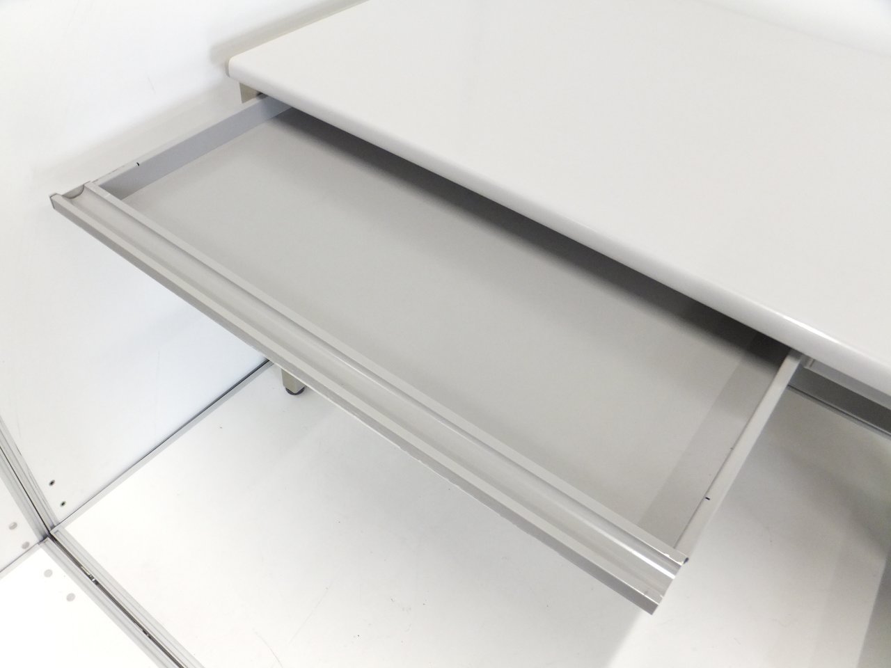 ずらりとデスクが並んでおります。中古と新品を取り扱っております。非常に高額な商品も中古ではお買い求めやすい価格に!