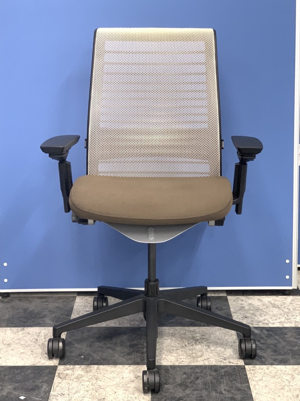 【話題のシンク2チェア入荷!】スチールケース(Steelcase)/シンク2(Think)/色:ホワイト×ブラウン/ランバーサポート付/可動肘