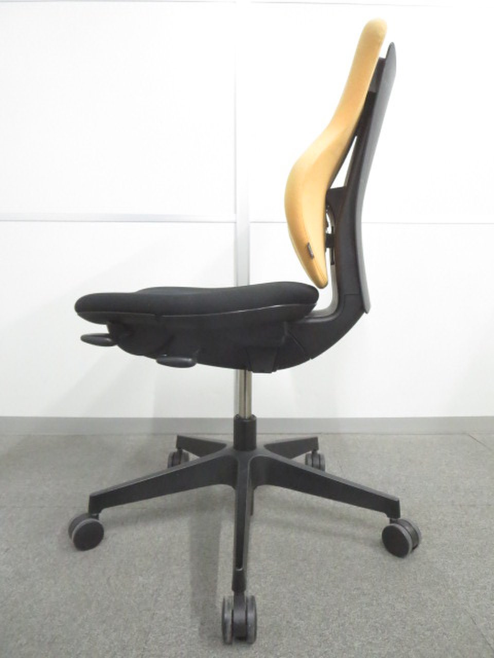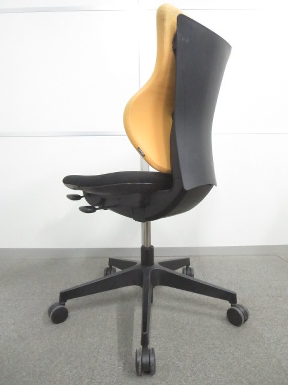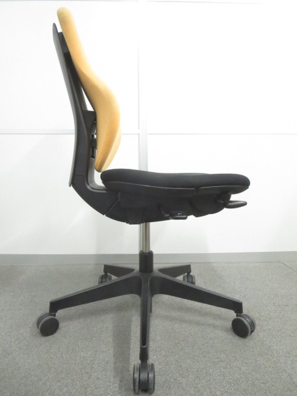 - 女性の作業姿勢に多く見られる2つの姿勢を、美しく支える背もたれ形状です。後傾しても背のラインを崩しません。