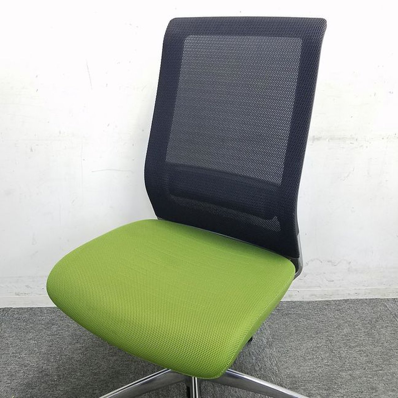 肘無のスマートなメッシュチェア!ランバーサポート付きで腰痛のお客様へは特におすすめ!■メッシュ■グリーン■ブラック■シルバーフレーム【値下品】
