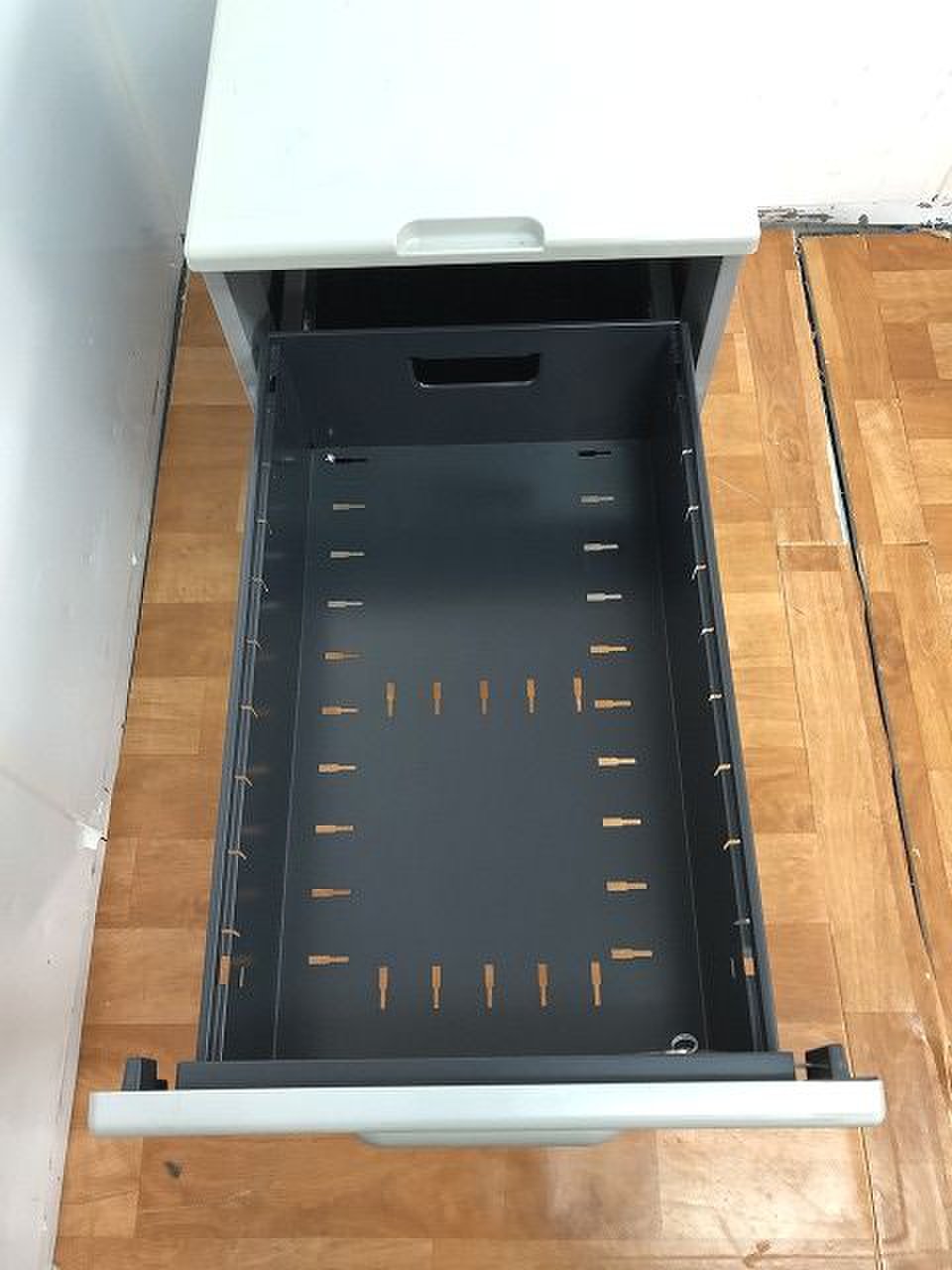 - 一部不具合ありその脇机・ワゴンの本来の効用を果たすための機能以外の一部が使用不可な状態。(例、引出が開閉しづらい、 キャスターロック機能使用不可、ラッチ不良 等がある。)