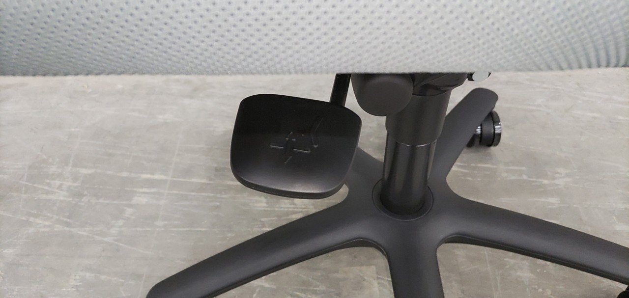 もう一つは、オカムラ社独自の""異硬度クッション""が座面に採用されていることです。これは座面が位置により異なる硬さのウレタンでできており、前方は腿裏を圧迫しないようソフトに、後方はしっかりと体重を支えるために少し硬めに作られています。クッション性とホールド感の両立により、長時間の作業での疲れを軽減してくれます。"