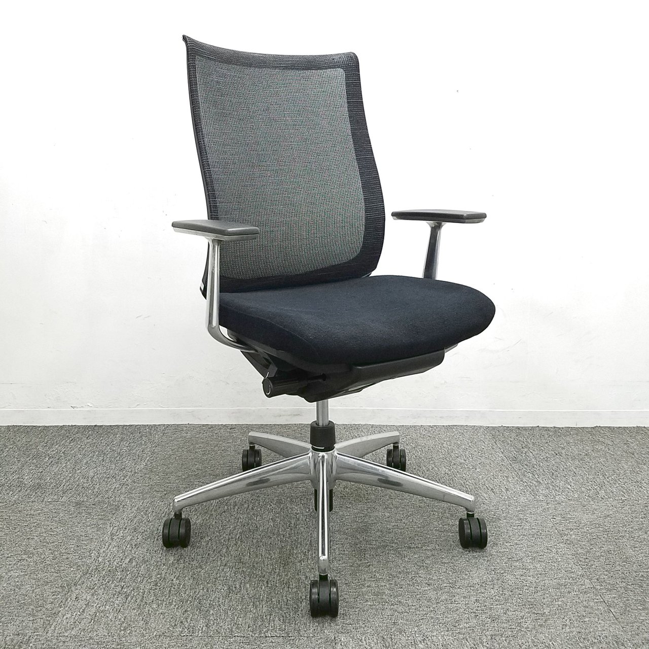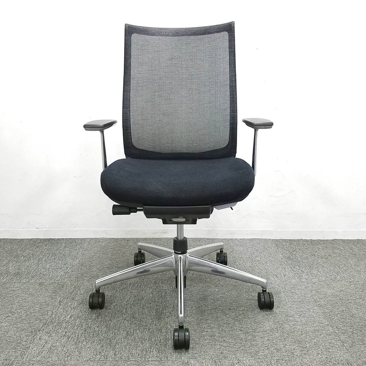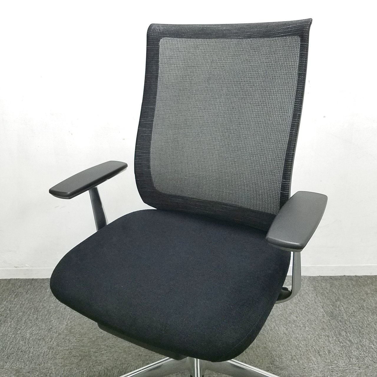 【肘に傷あり】【専門業者によるクリーにング済み!】コクヨ製 ベゼルチェア 固定肘 ブラック