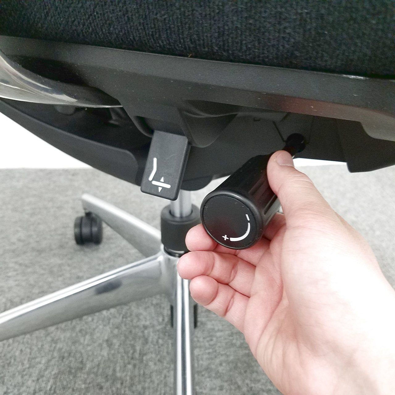 - 基本的な、高さ調節、リクライニング機能に加え、肘掛の高さ、肘あての前後・角度調節、座面奥行き調節など充実した機能を搭載。