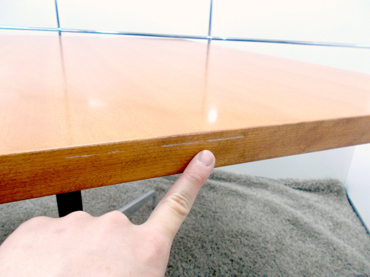 - 壊れている天板歪み、アジャスター無し、キャスター使用不可のようにそのテーブルの本来の効用を果たすための機能に不具合がある。
