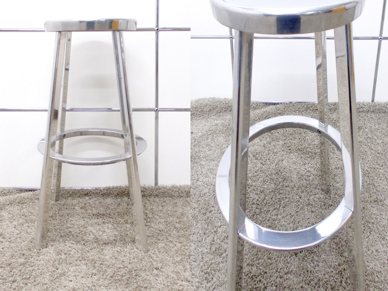シンプルなデザインにミラー仕上げのアルミニウムを使用した、スタイリッシュなスツール。