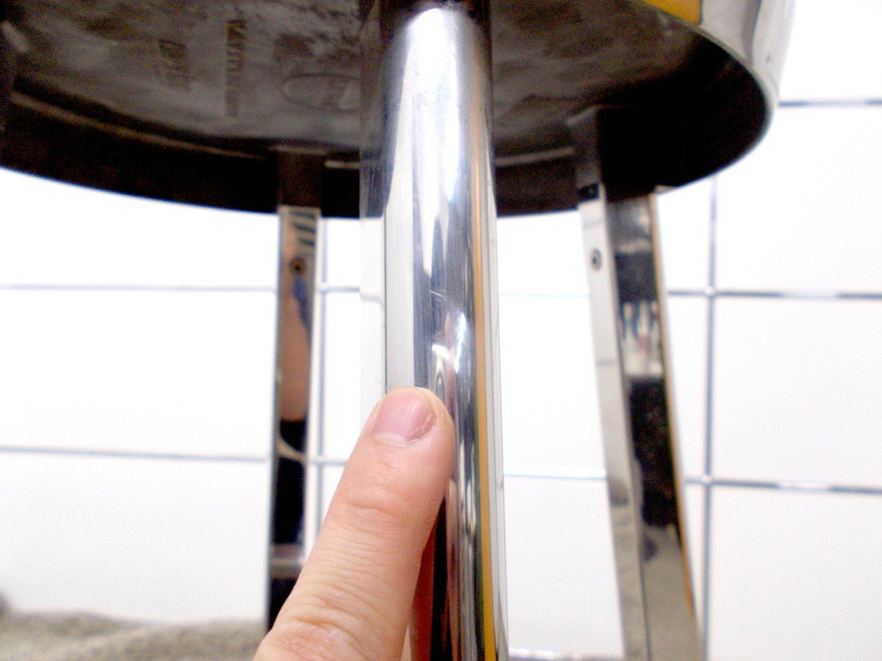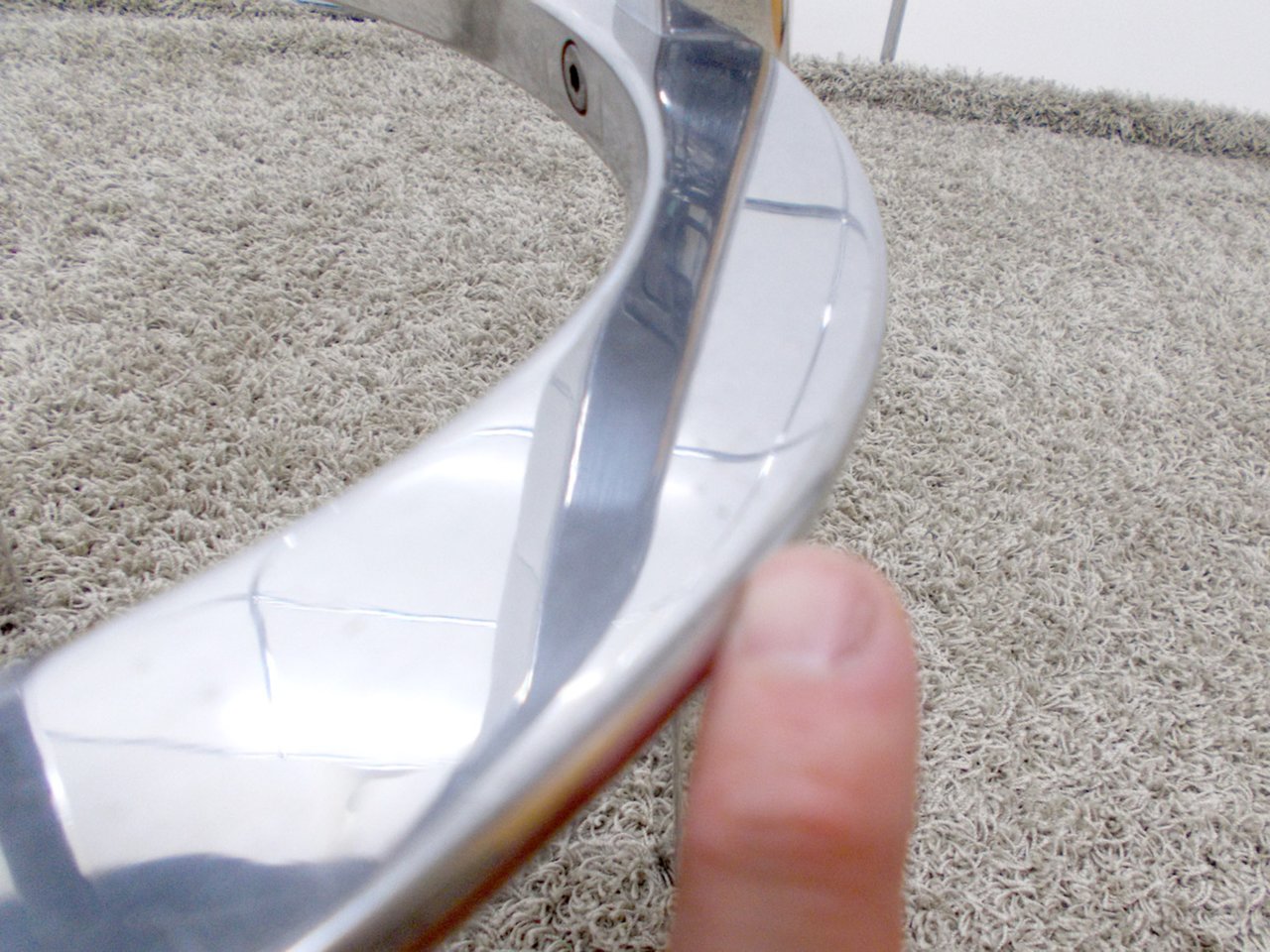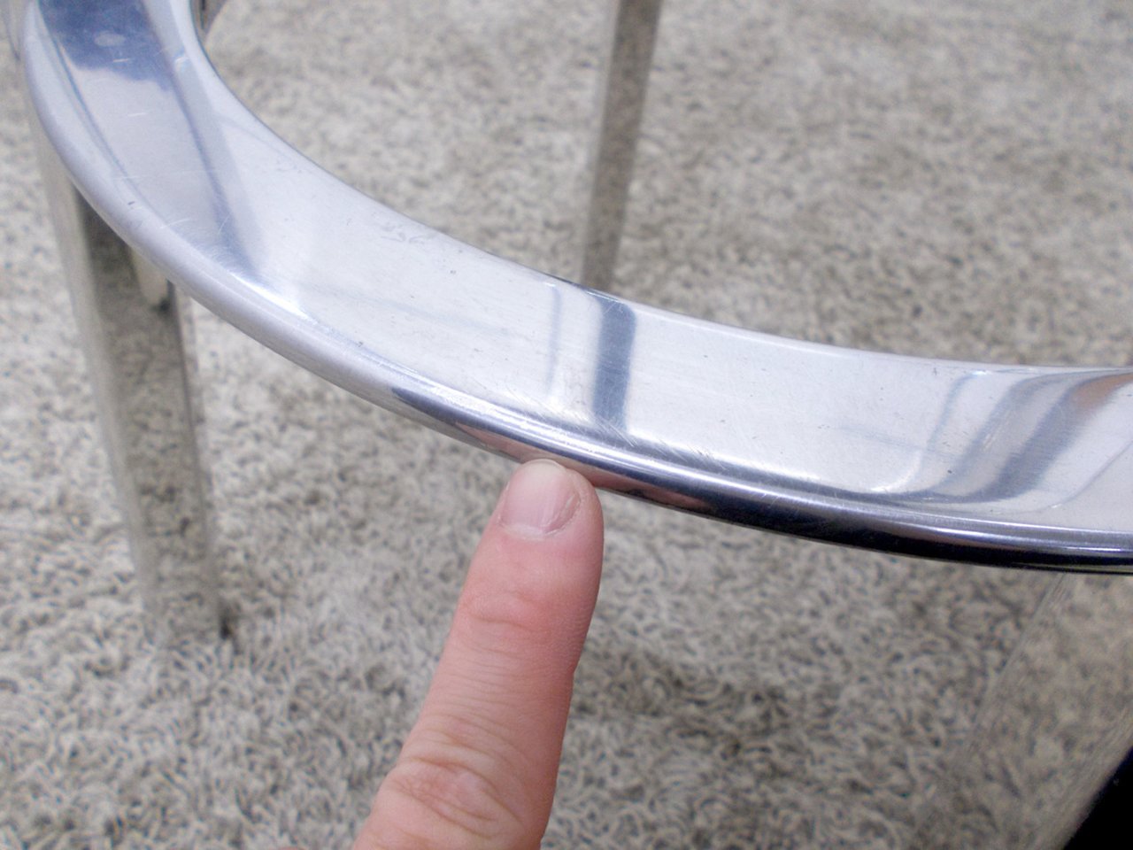 - かなり強い濃い黄ばみ・変色が商品全体にある。(例、座面・背もたれ、脚部等にある。)
