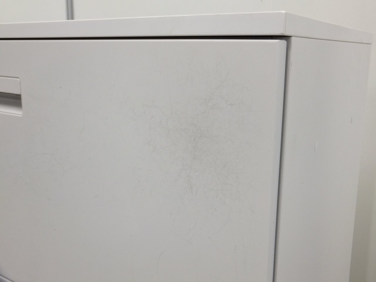 - あり黄ばみ・変色が広い範囲にうっすらある、または濃い黄ばみ・変色が一部ある。(例、天板、正面、背部、サイド部分にある。)