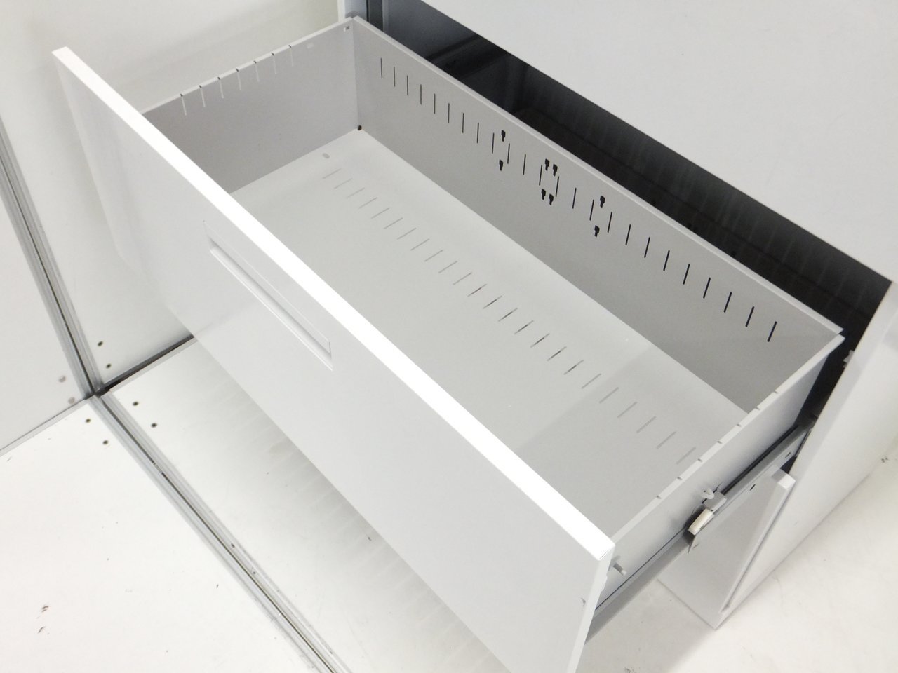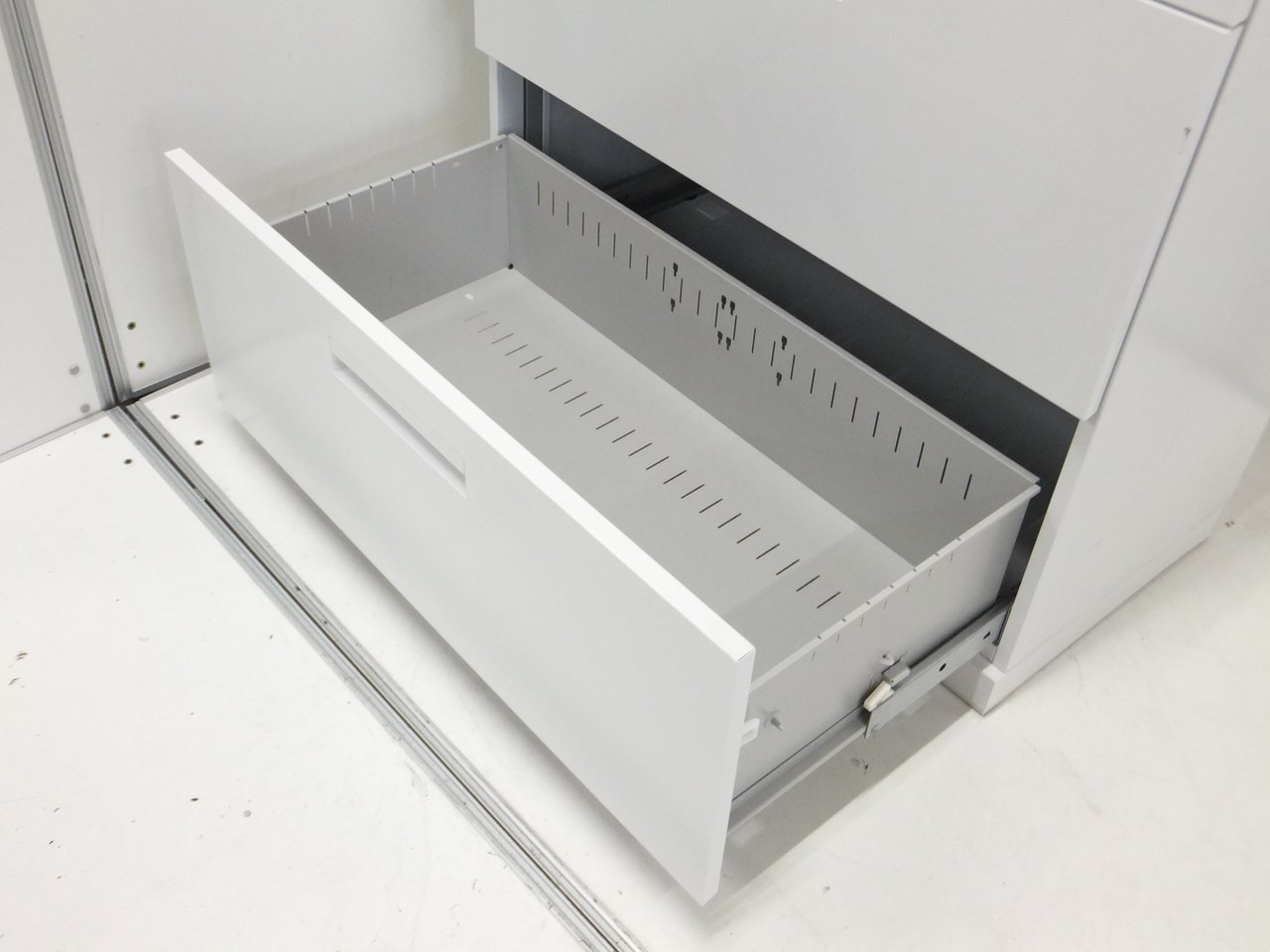 - 一部不具合ありそ引出の開閉不可、施錠不可、棚板無しといったの書庫の本来の効用を果たすための機能以外の一部が使用不可(例、扉、引出の開閉がしづらいなどがある。 )