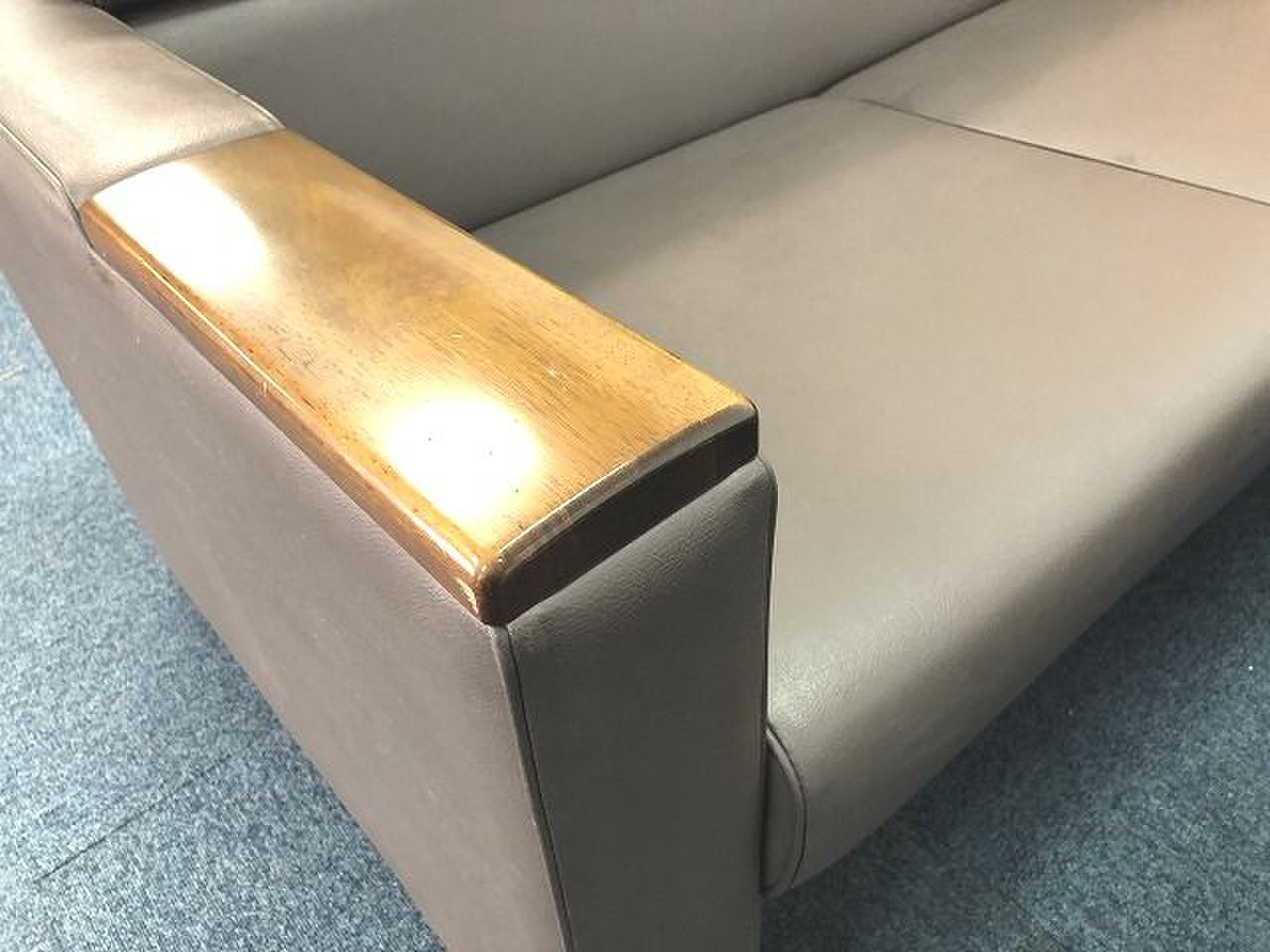 - あり黄ばみ・変色が広い範囲にうっすらある、または濃い黄ばみ・変色が一部ある。(例:三人用ソファ、二人用ソファ、一人用ソファの場合、背もたれ、肘かけ、座面等、 センターテーブルの場合、天板、脚にある。)