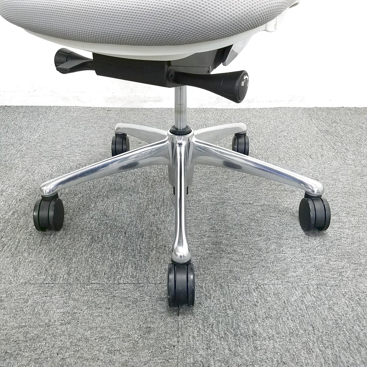 背のリングフレームとメッシュが背中をやさしく受け止め、座ったままの状態で様々なシーティング調整が可能。