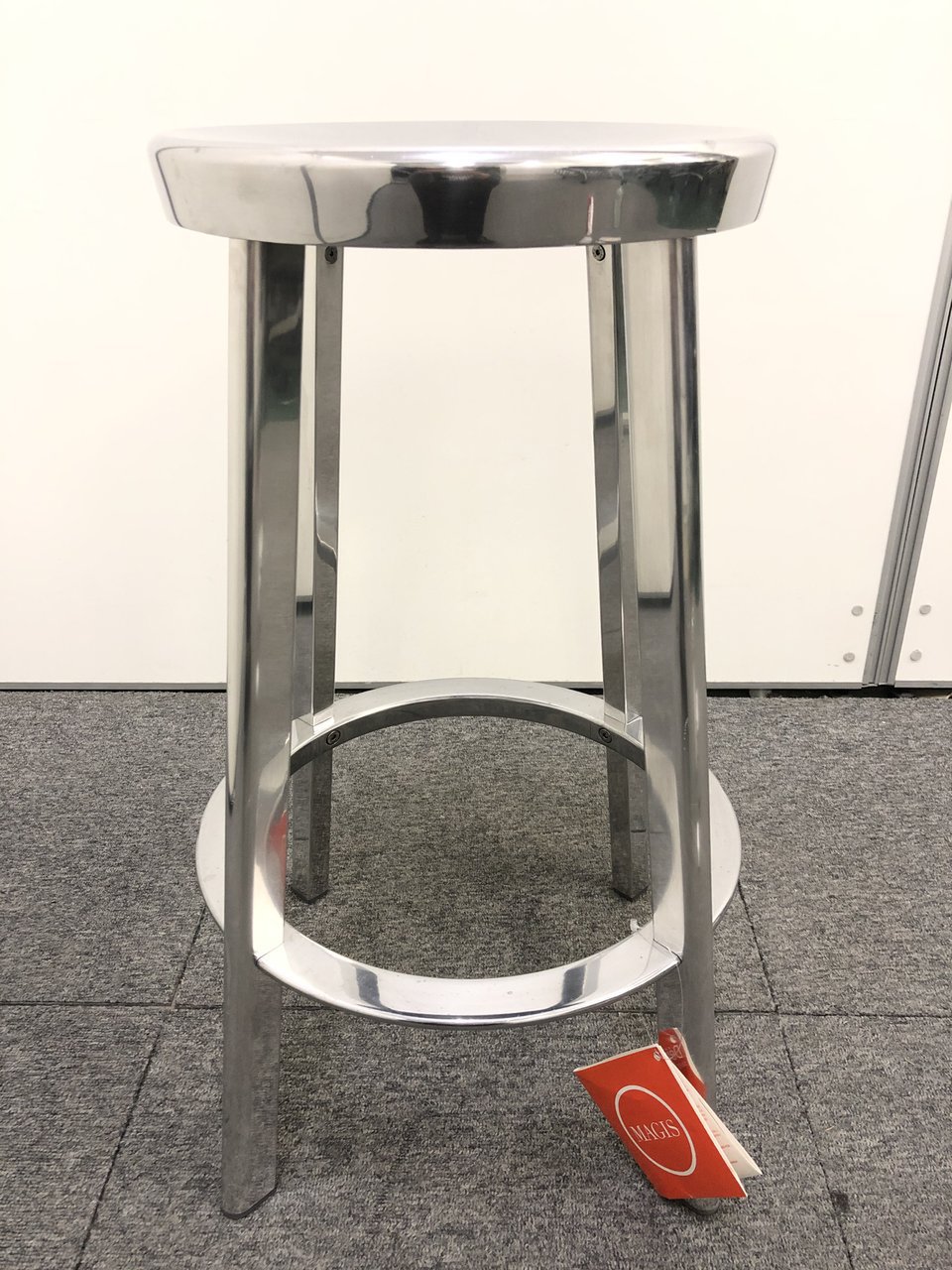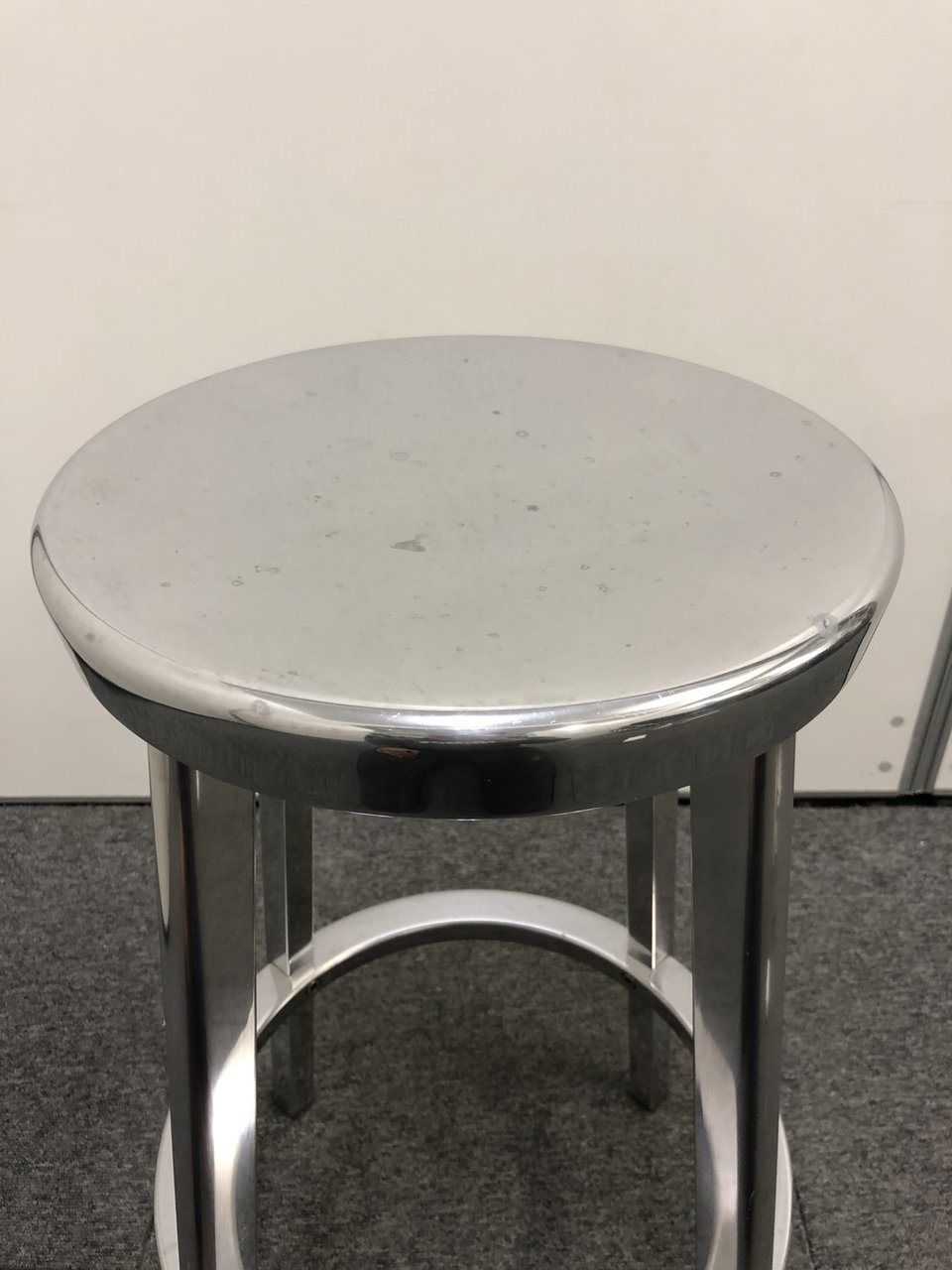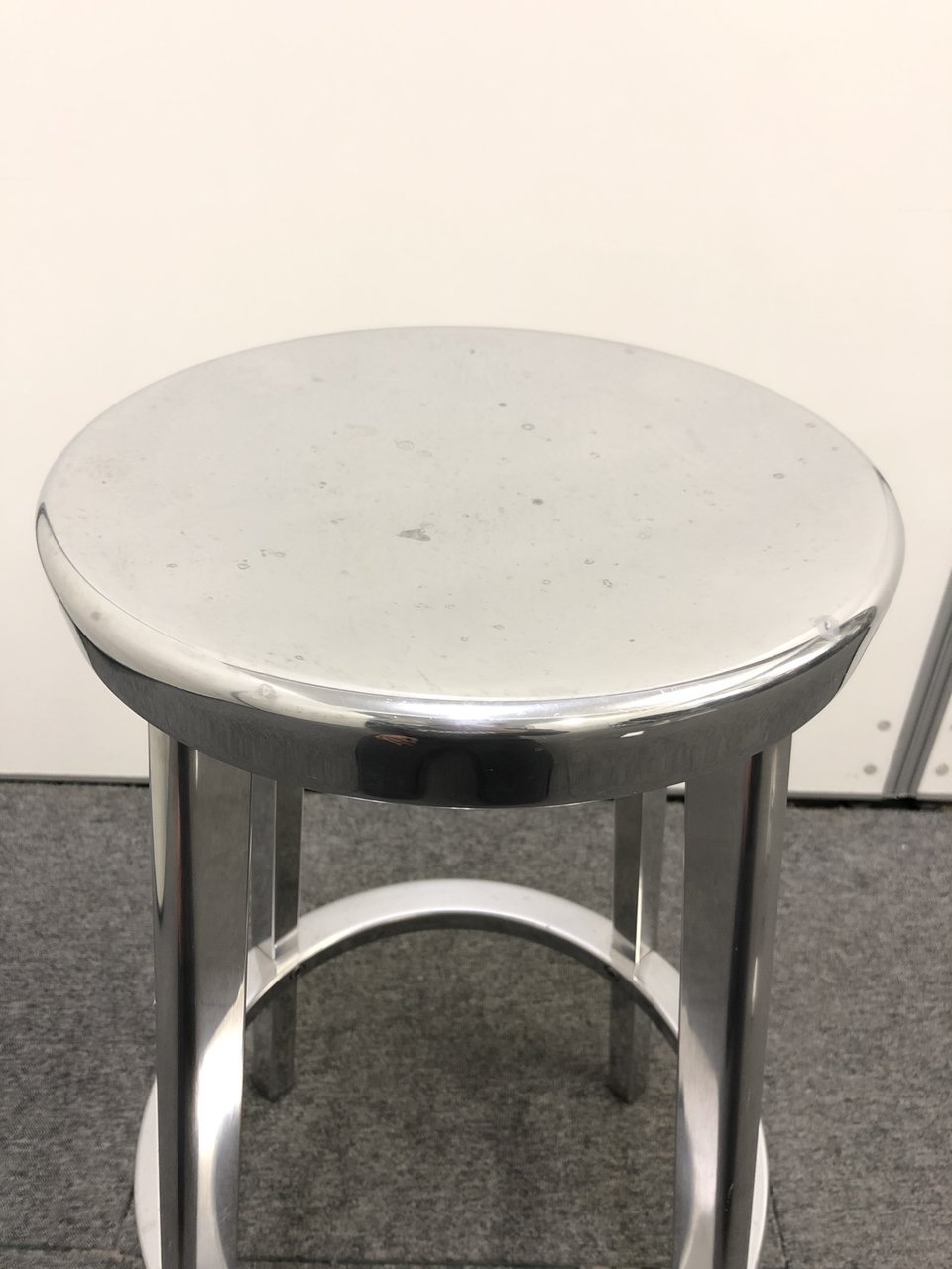 シンプルなデザインに磨き仕上げのアルミニウムを使用したスタイリッシュなスツール。