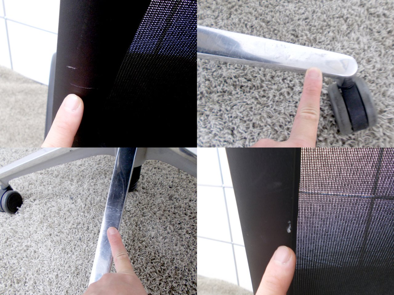 - 目立つ箇所あり傷・破れ・ほつれ・へたり・しわが多数または深い傷・破れ・ほつれ・へたり・しわが一部ある。※座面・背もたれ、シェル、脚部等にある。