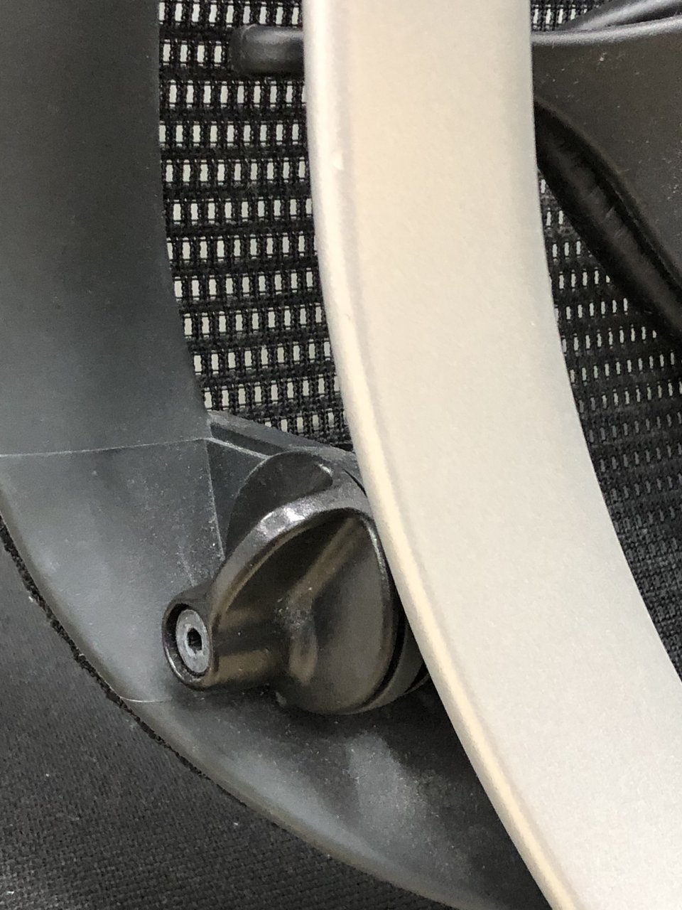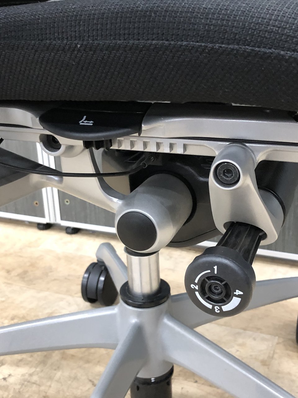 - ロッキングの強弱を調整するダイヤルがございます。体型に合わせてリクライニングの固さを座ったままで調整できます。