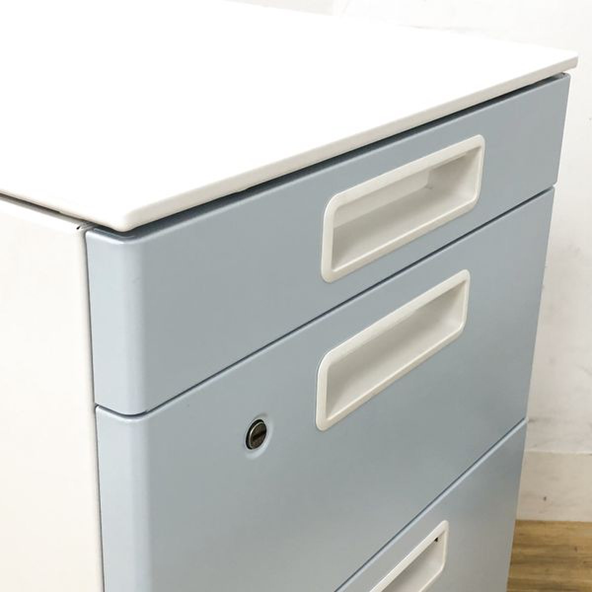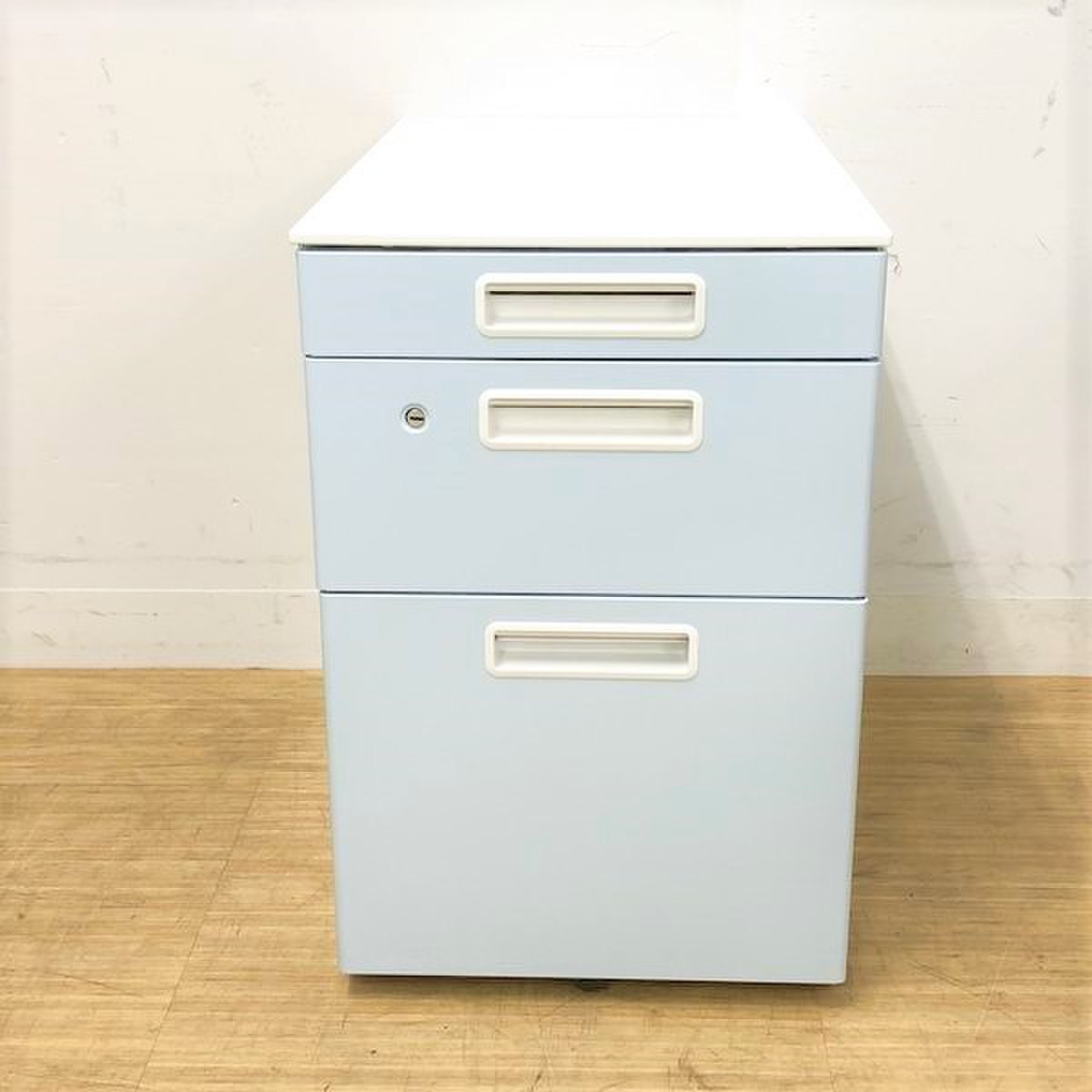 【未使用品】ホワイトブルー色 鍵2本付き スチールワゴン コクヨ インヴェント- 名古屋千種店