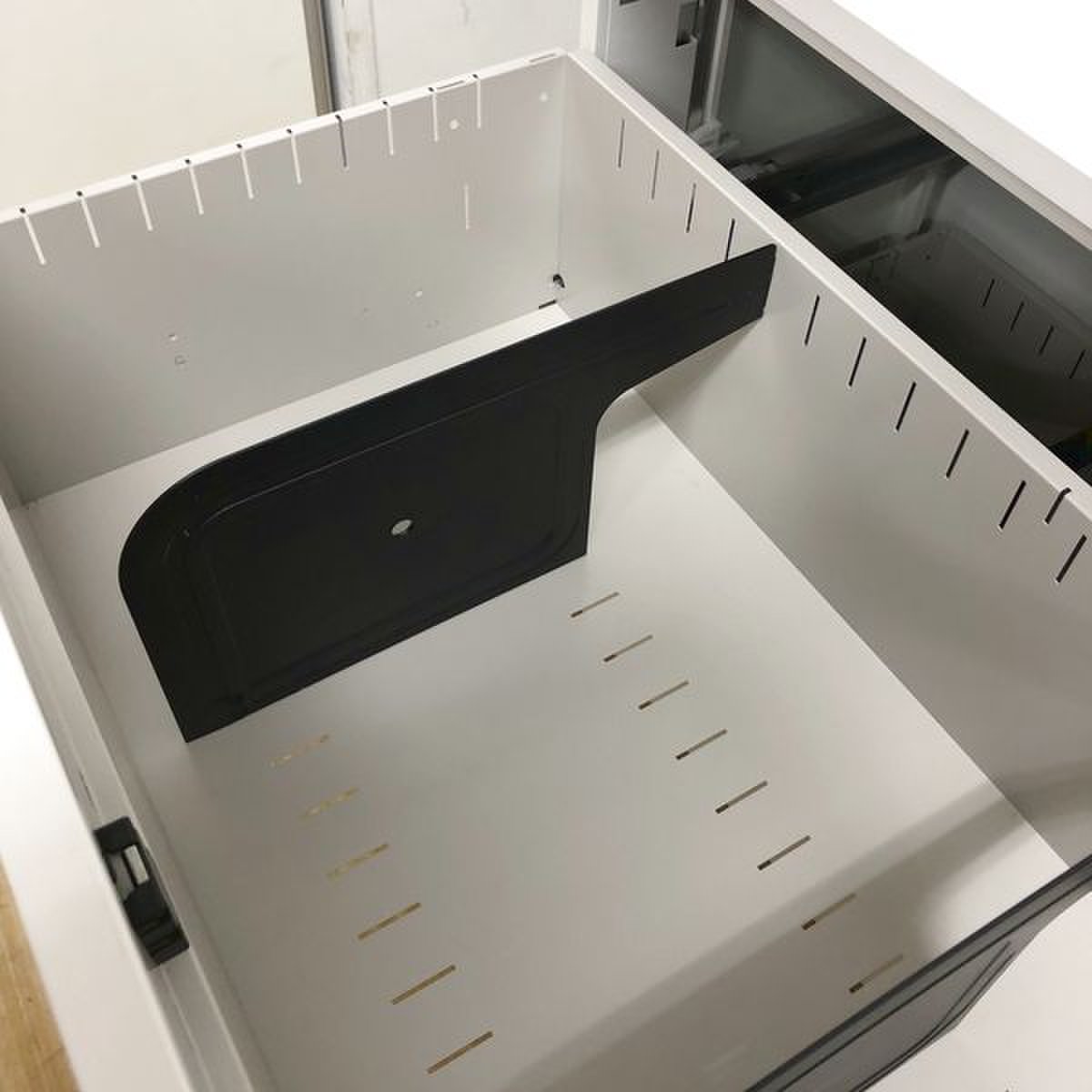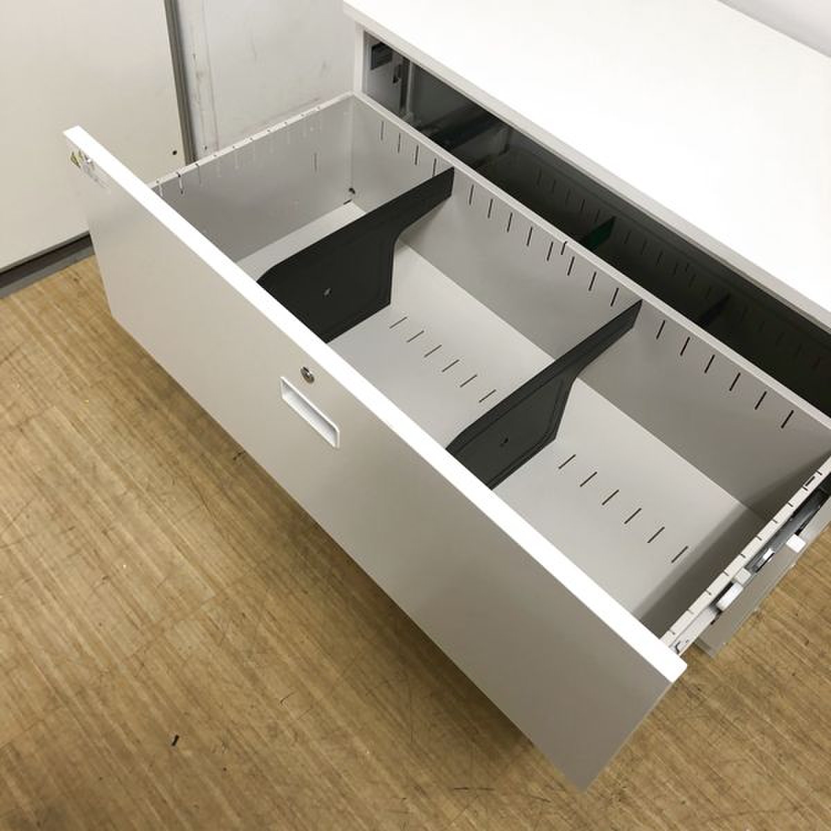 - 一部不具合ありそ引出の開閉不可、施錠不可、棚板無しといったの書庫の本来の効用を果たすための機能以外の一部が使用不可(例、扉、引出の開閉がしづらいなどがある。 )