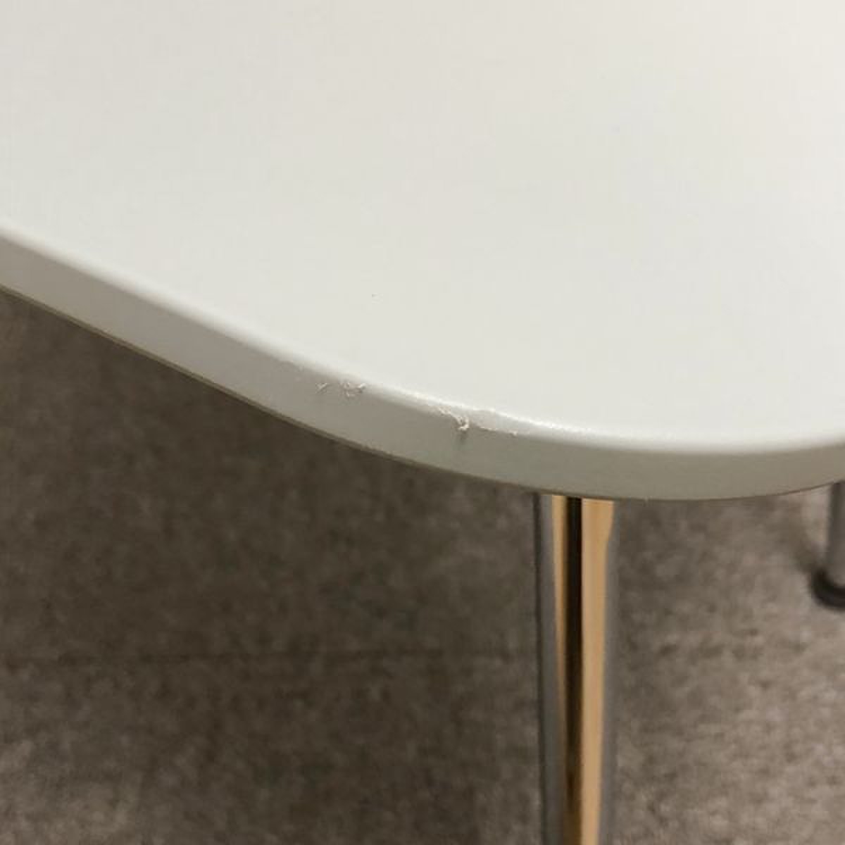 - かなり強い濃い黄ばみ・変色が商品全体にある。(例、座面・背もたれ、脚部等にある。)