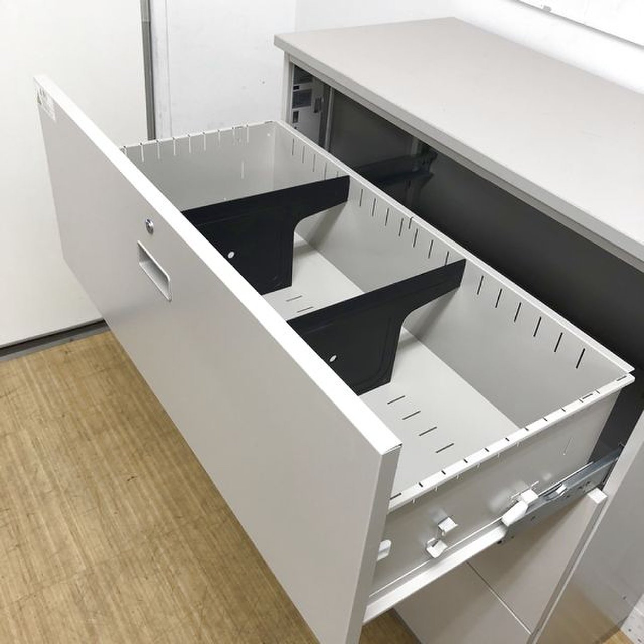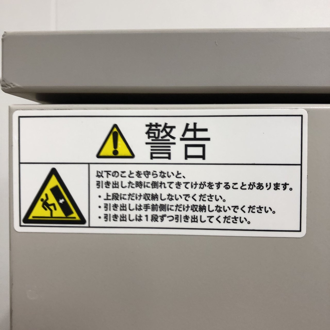 - 一部不具合ありそ引出の開閉不可、施錠不可、棚板無しといったの書庫の本来の効用を果たすための機能以外の一部が使用不可(例、扉、引出の開閉がしづらいなどがある。 )