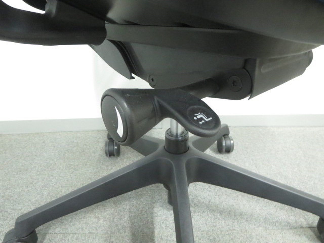 - 座面右下のダイヤル操作で、リクライニングの強弱調整が行えます。これまでのダイヤル式よりも、少ない回転数で、最弱?最強の調整が可能です。
